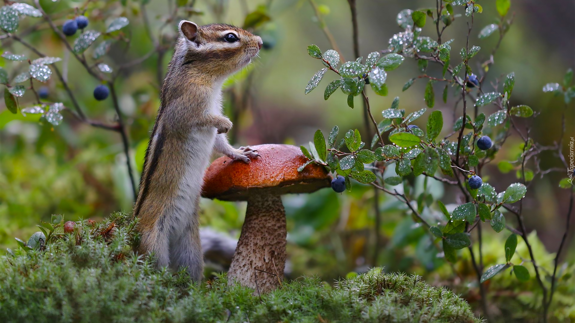 Edytor tapety: Burunduk syberyjski oparty o grzyba