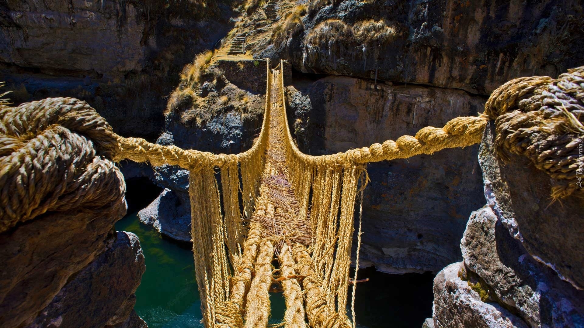 Edytor tapety: Most linowy Qeswachaka Rope Bridge w Peru
