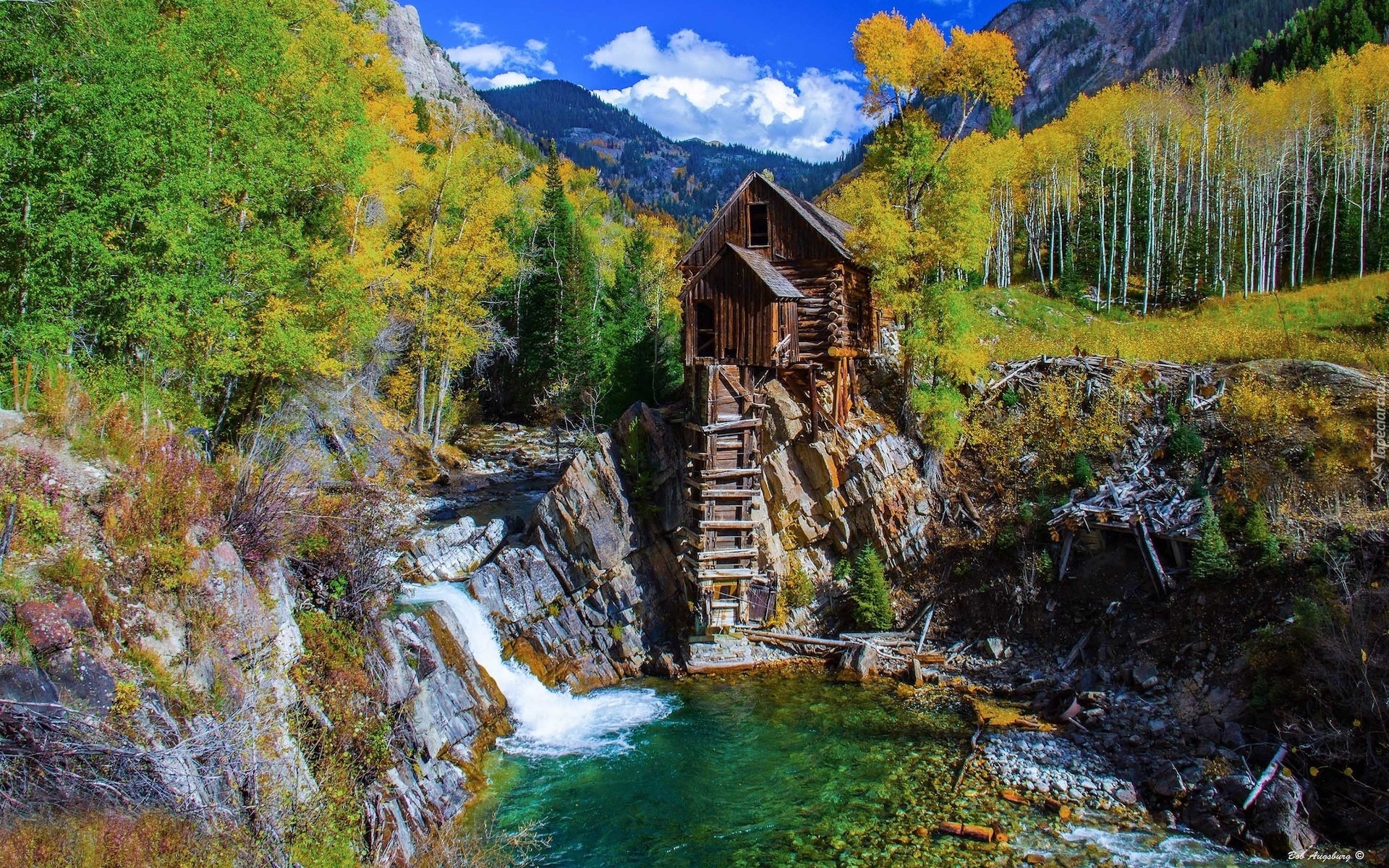 Edytor tapety: Młyn Crystal Mill w jesiennej scenerii