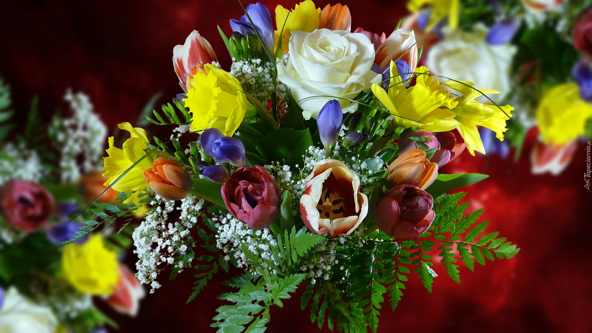 Edytor tapety: Bukiet kolorowych wiosennych kwiatów