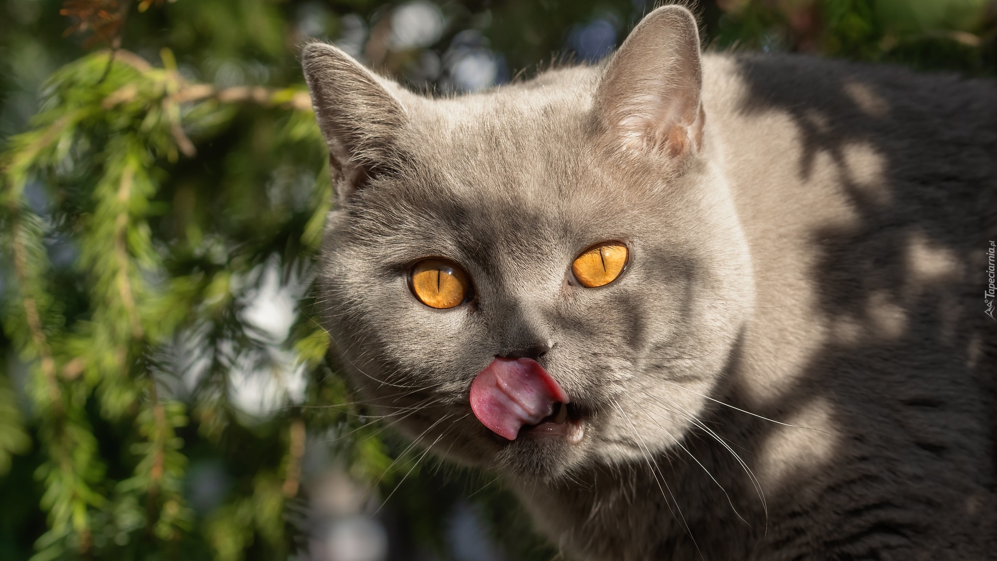 Edytor tapety: Kot brytyjski krótkowłosy z wystawionym językiem