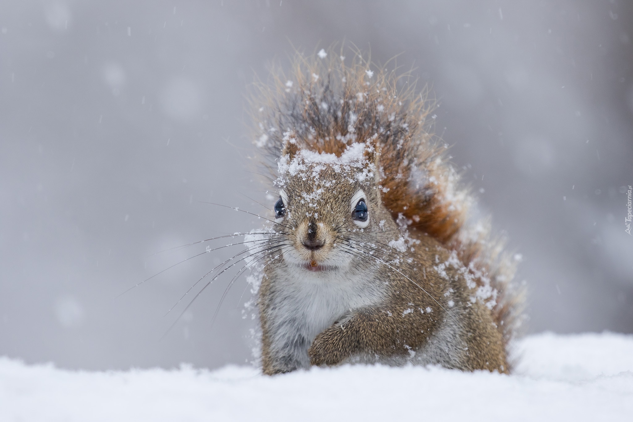 Edytor tapety: Ośnieżona wiewiórka na śniegu