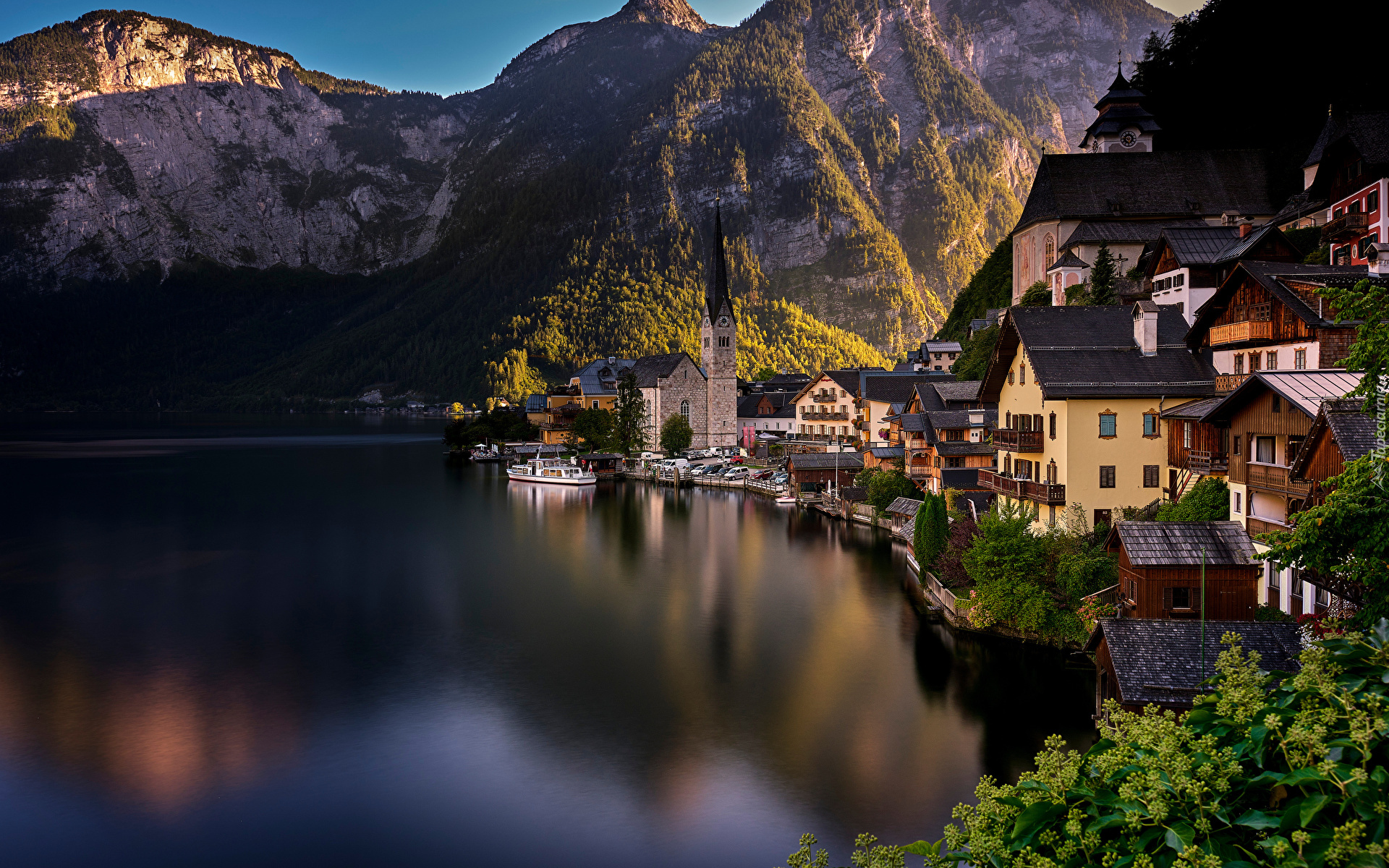 Edytor tapety: Hallstatt nad jeziorem i Alpy Salzburskie