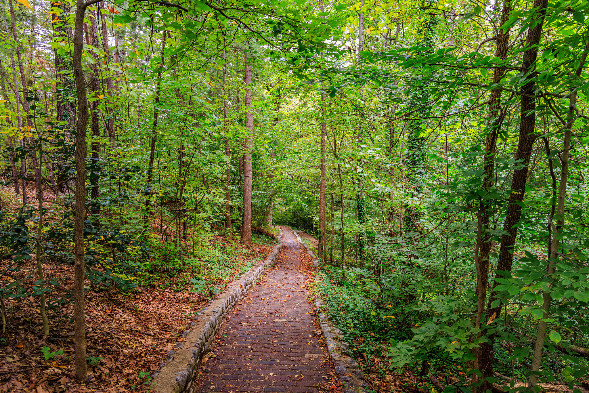 Edytor tapety: Drzewa po obu stronach ścieżki w zielonym lesie