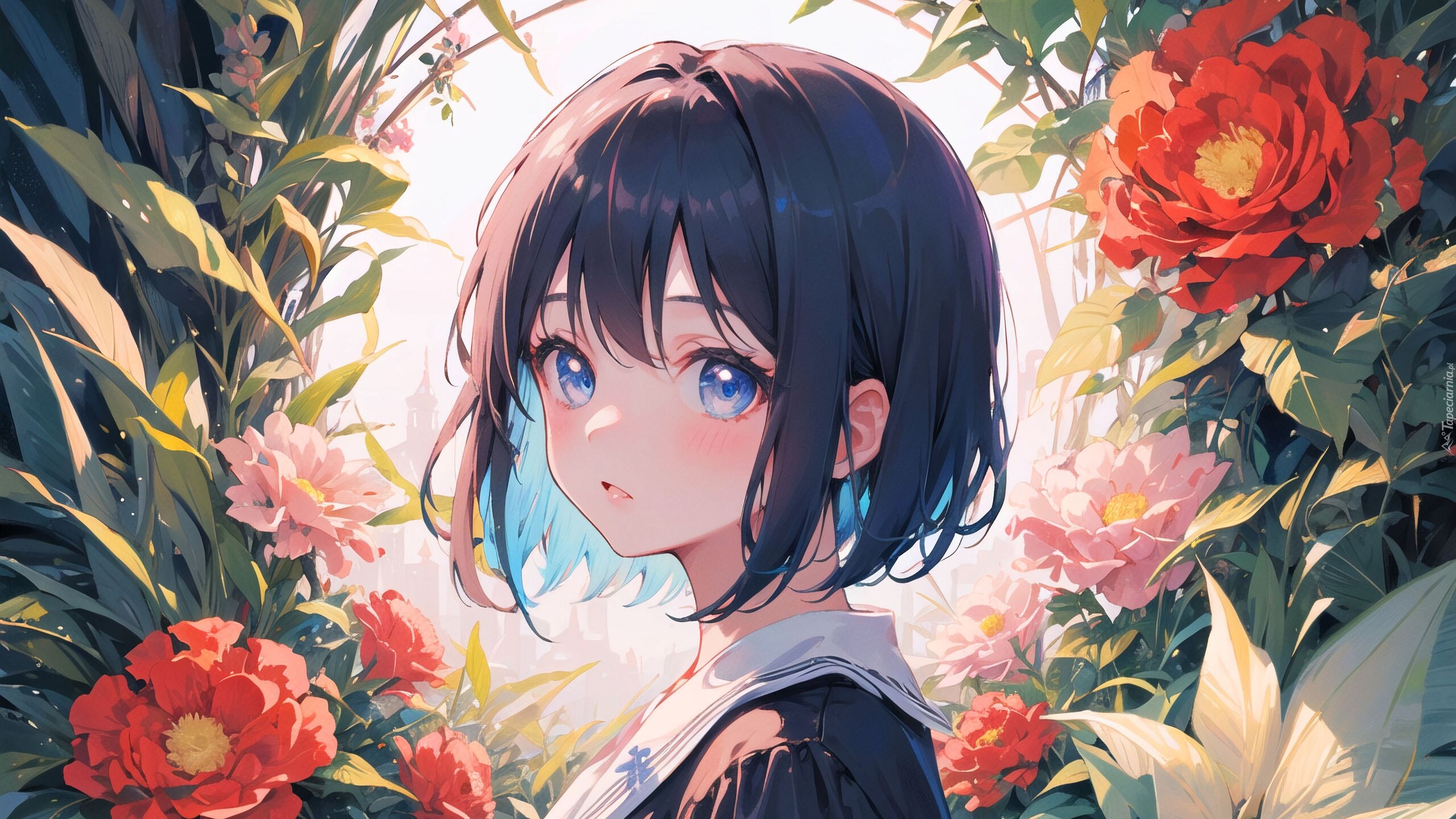 Edytor tapety: Dziewczyna z dużymi niebieskimi oczami w anime