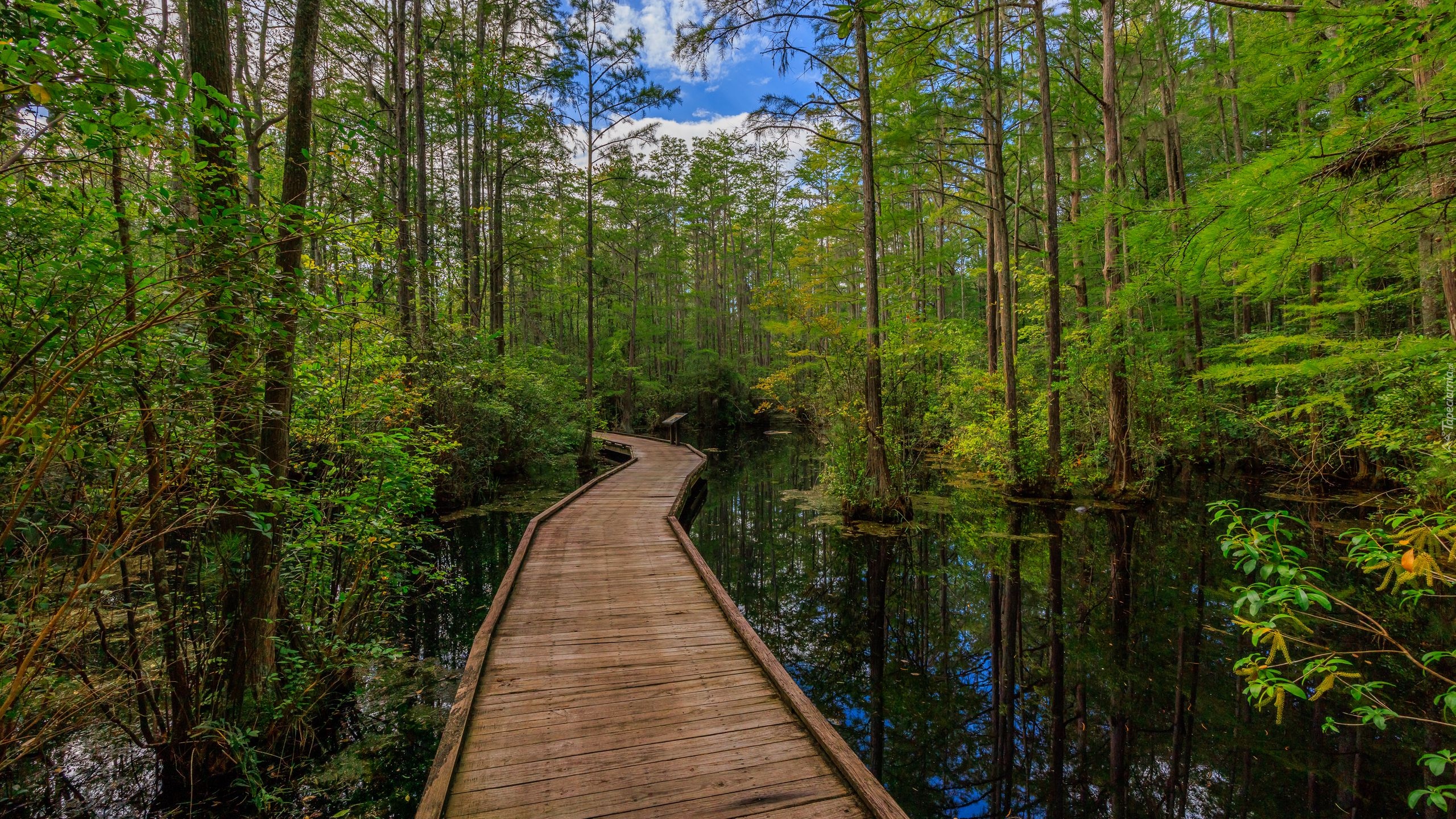 Edytor tapety: Pomost na mokradłach w lesie