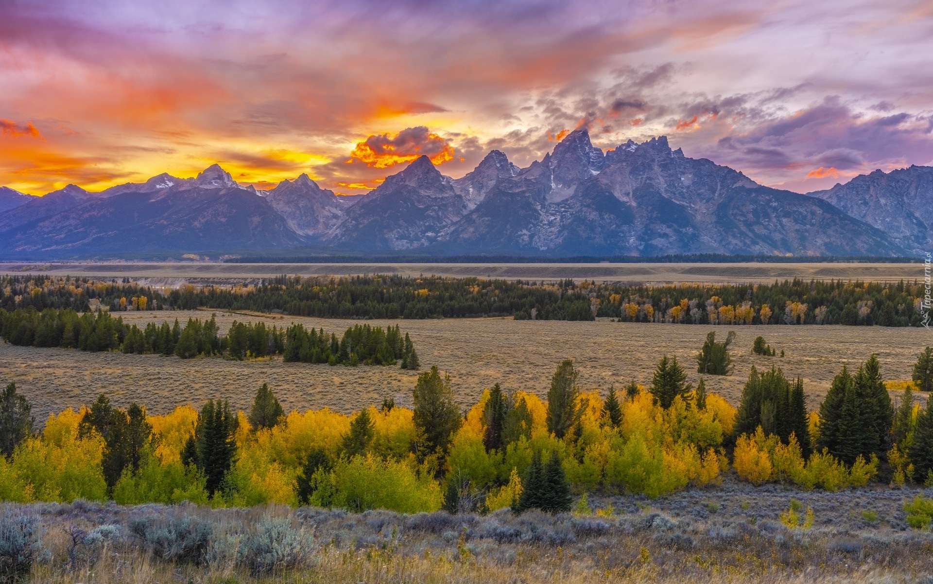 Edytor tapety: Kolorowe niebo nad górami Parku Narodowego Grand Teton