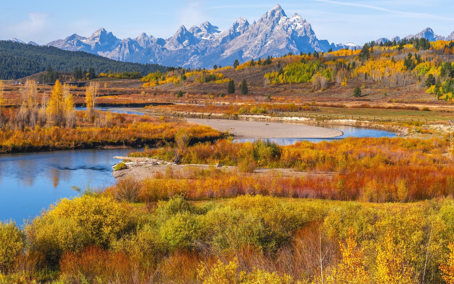 Edytor tapety: Jesienny krajobraz Parku Narodowego Grand Teton w Wyoming
