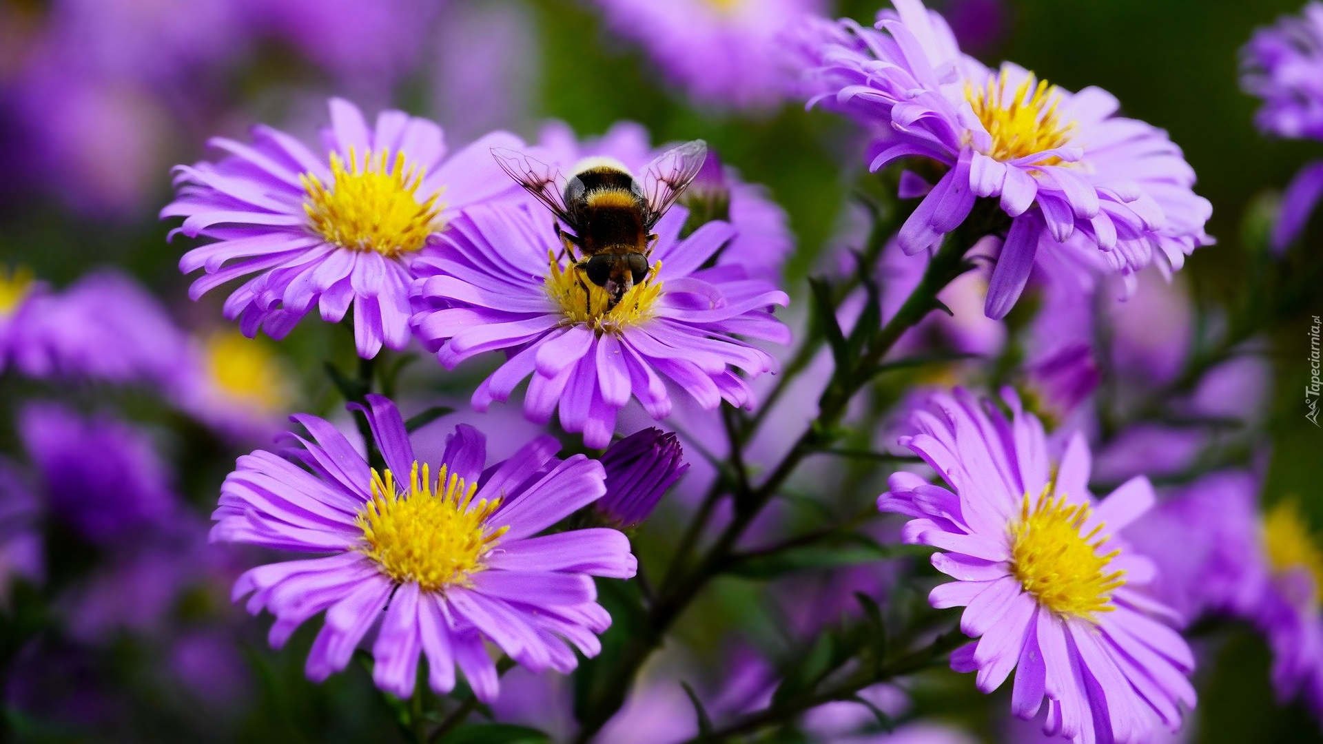Edytor tapety: Trzmiel na fioletowych astrach