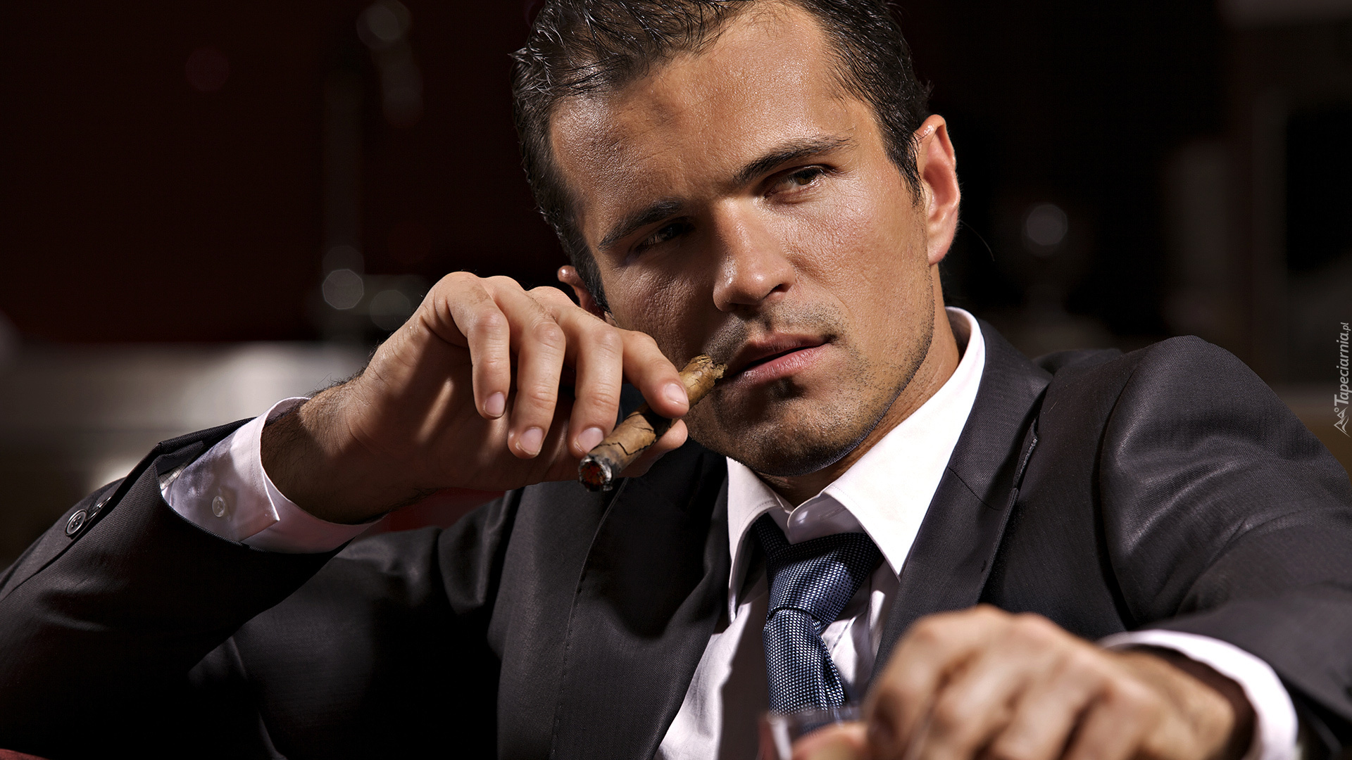 Edytor tapety: Mężczyzna w garniturze z cygarem