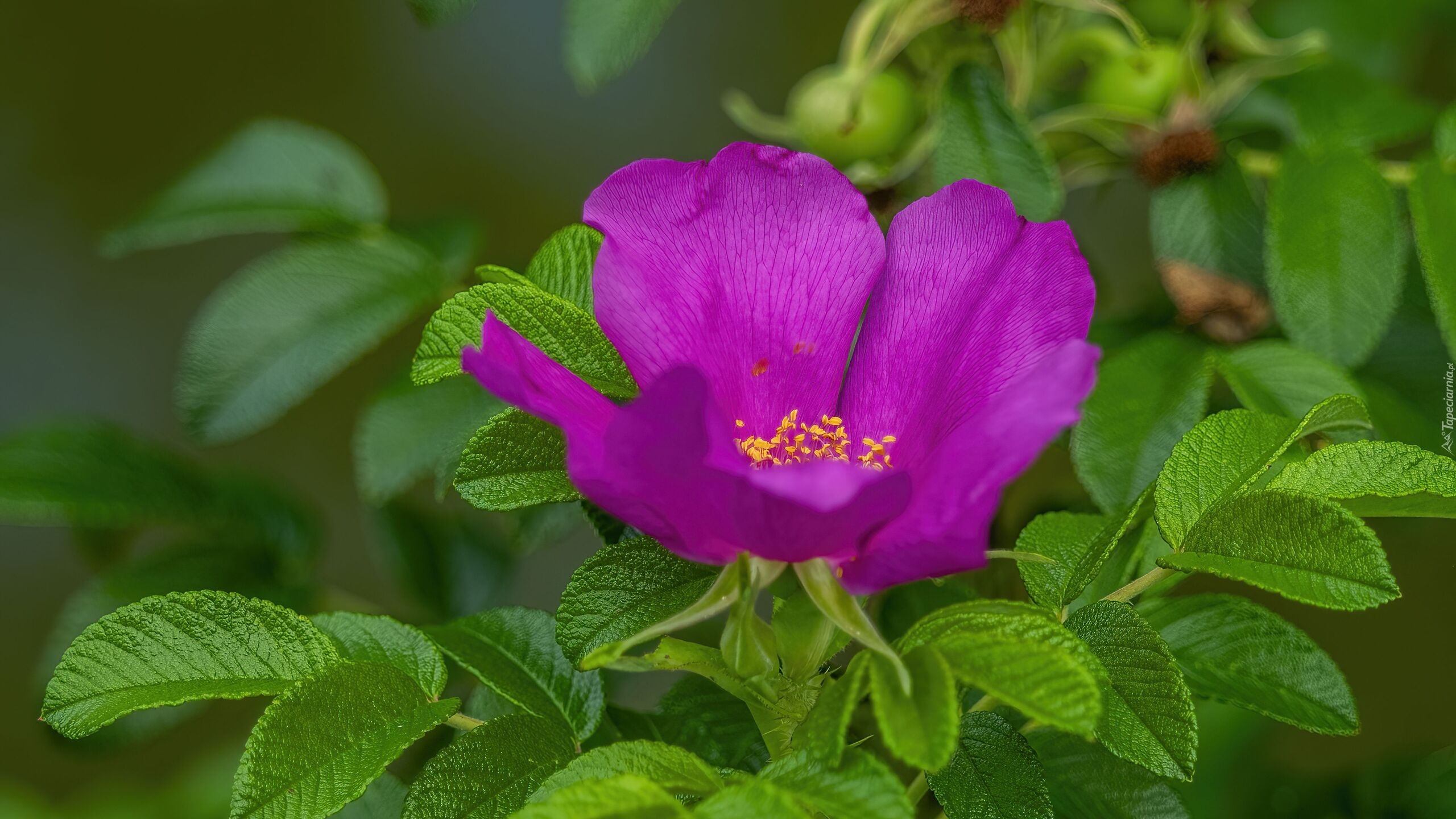 Edytor tapety: Rozkwitnięta fioletowa dzika róża