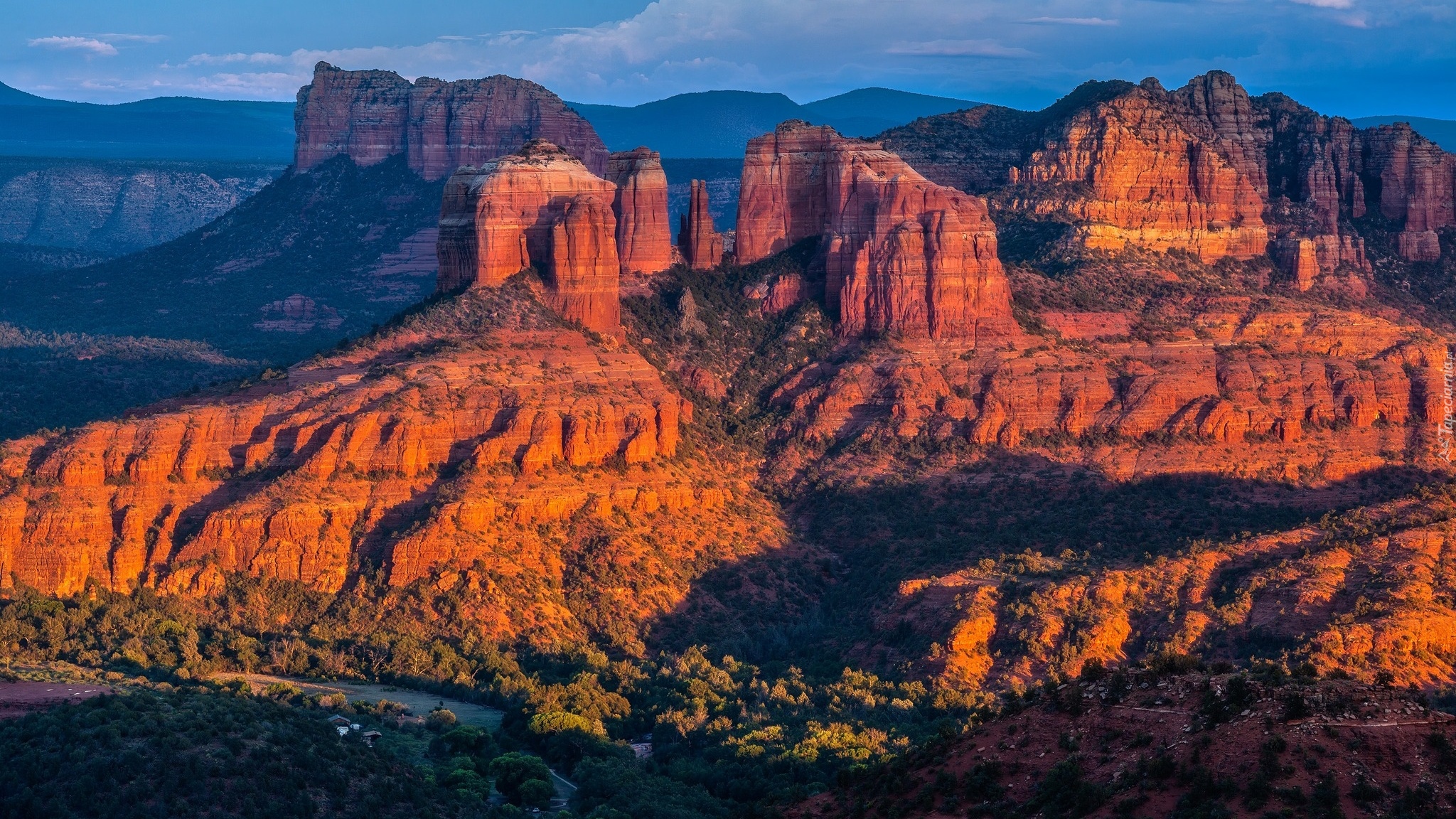 Edytor tapety: Rozświetlone skały Cathedral Rock w Sedonie