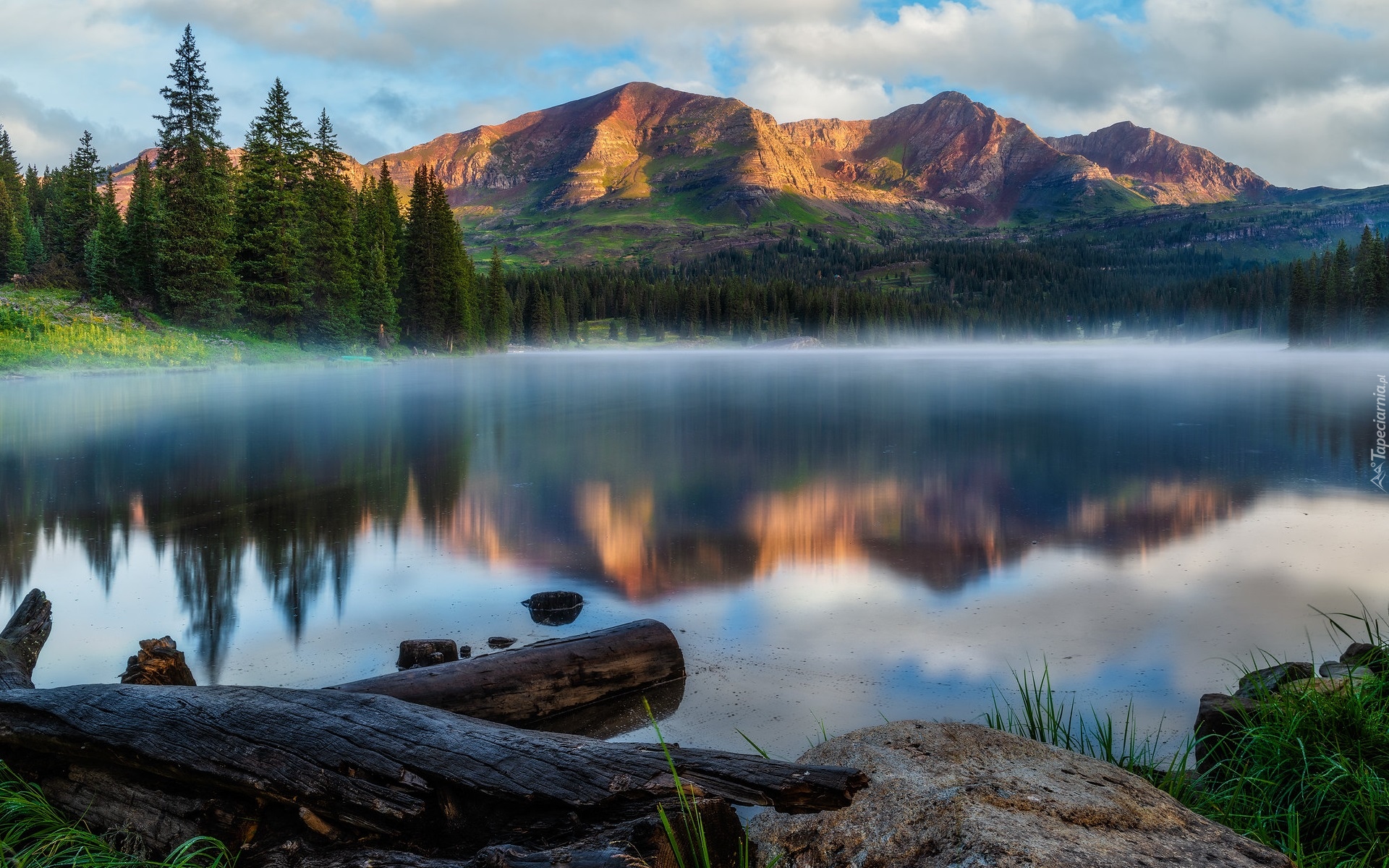 Edytor tapety: Mgła nad Lake Irwin i góry w oddali