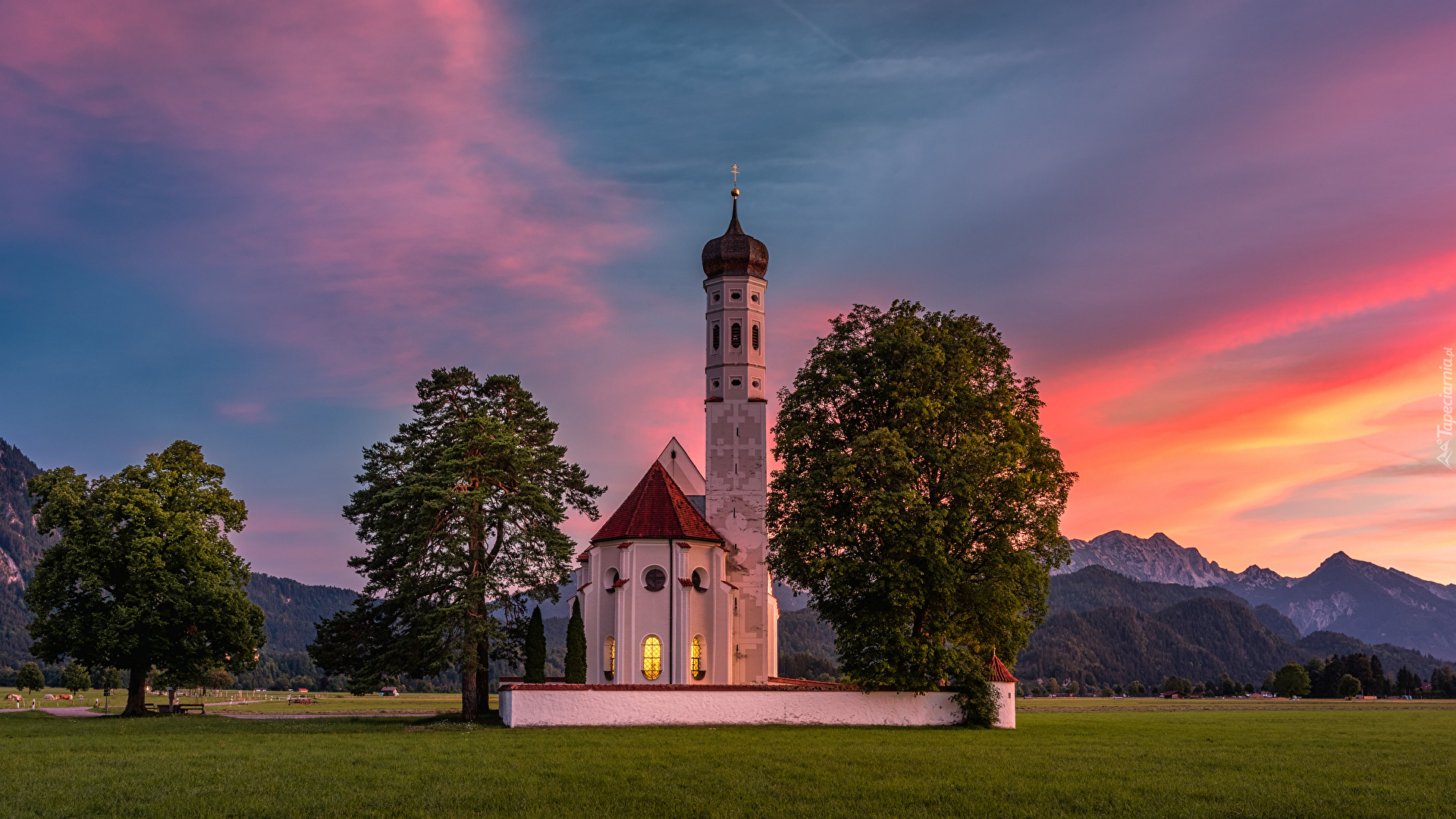 Edytor tapety: Kościół Eglise Saint Coloman obok drzew w Schwangau