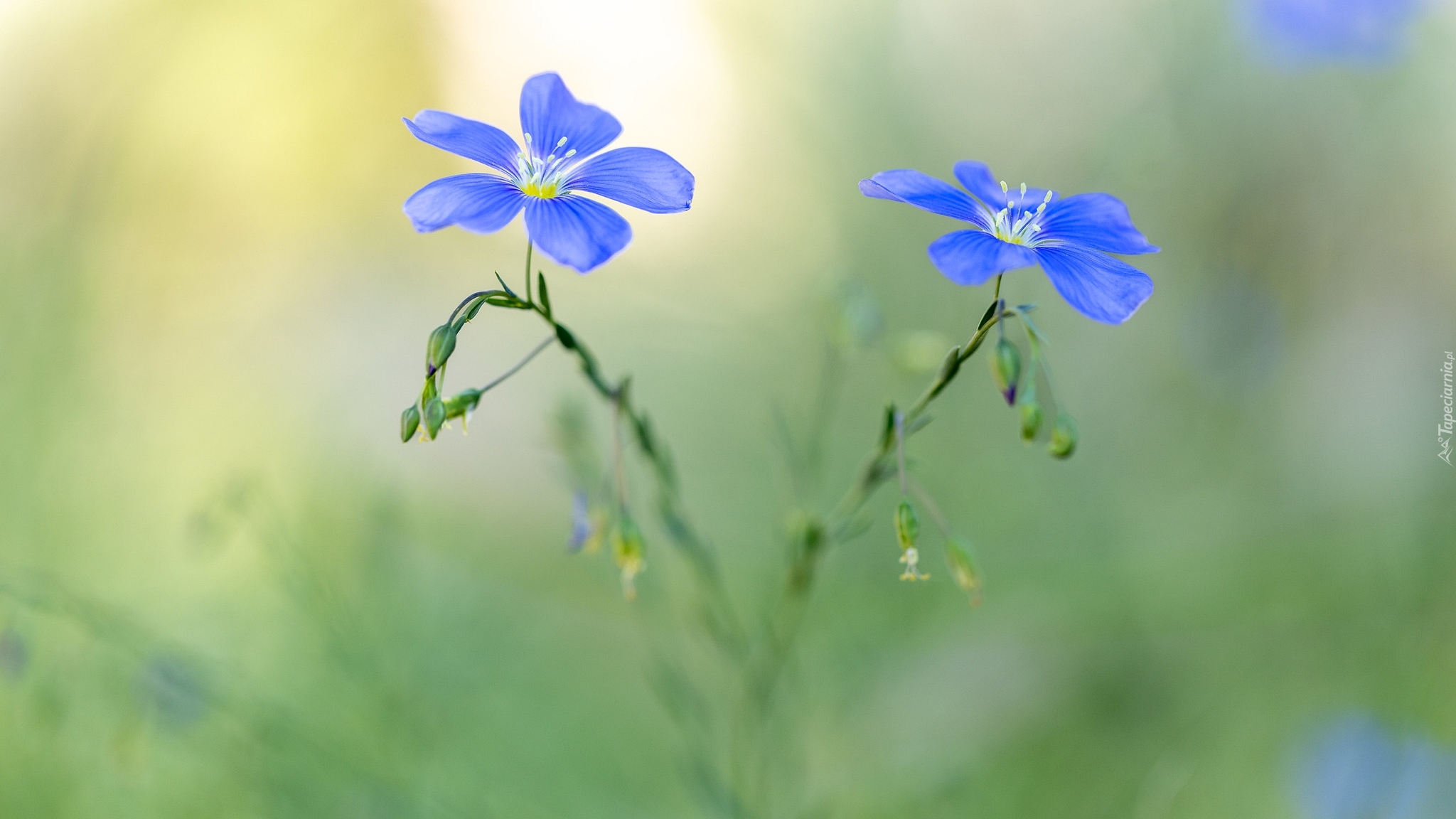 Edytor tapety: Kwiaty lnu na rozmytym tle