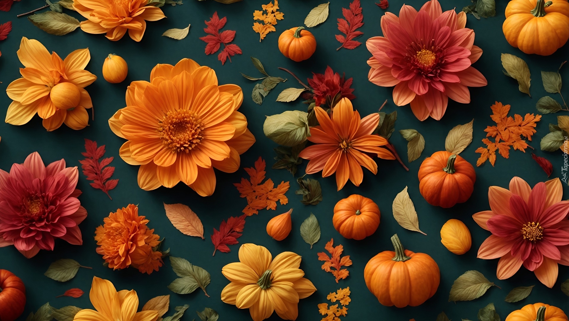 Edytor tapety: Jesienne kwiaty i dynie w grafice