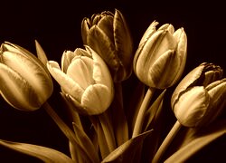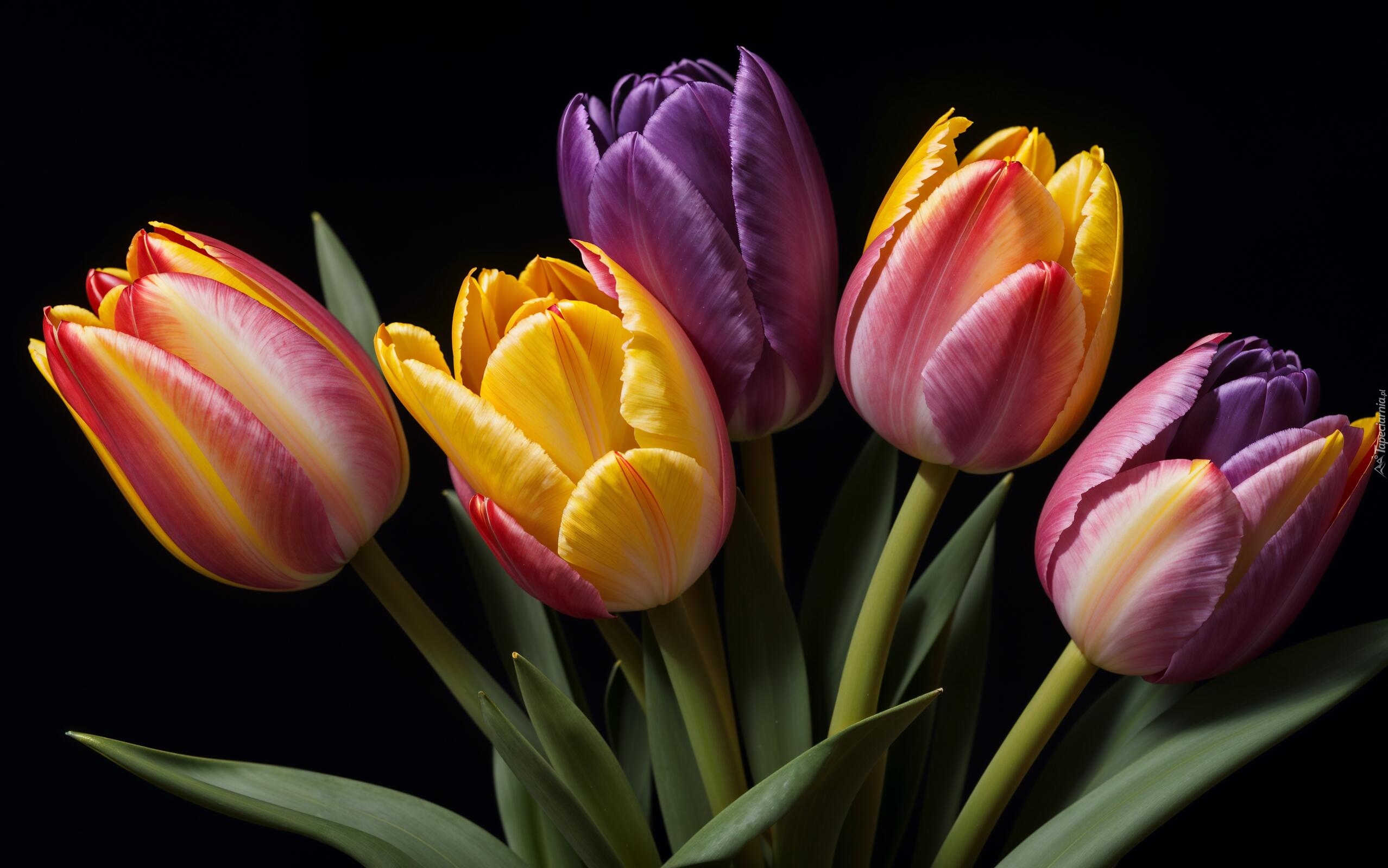 Edytor tapety: Kolorowe tulipany na ciemnym tle