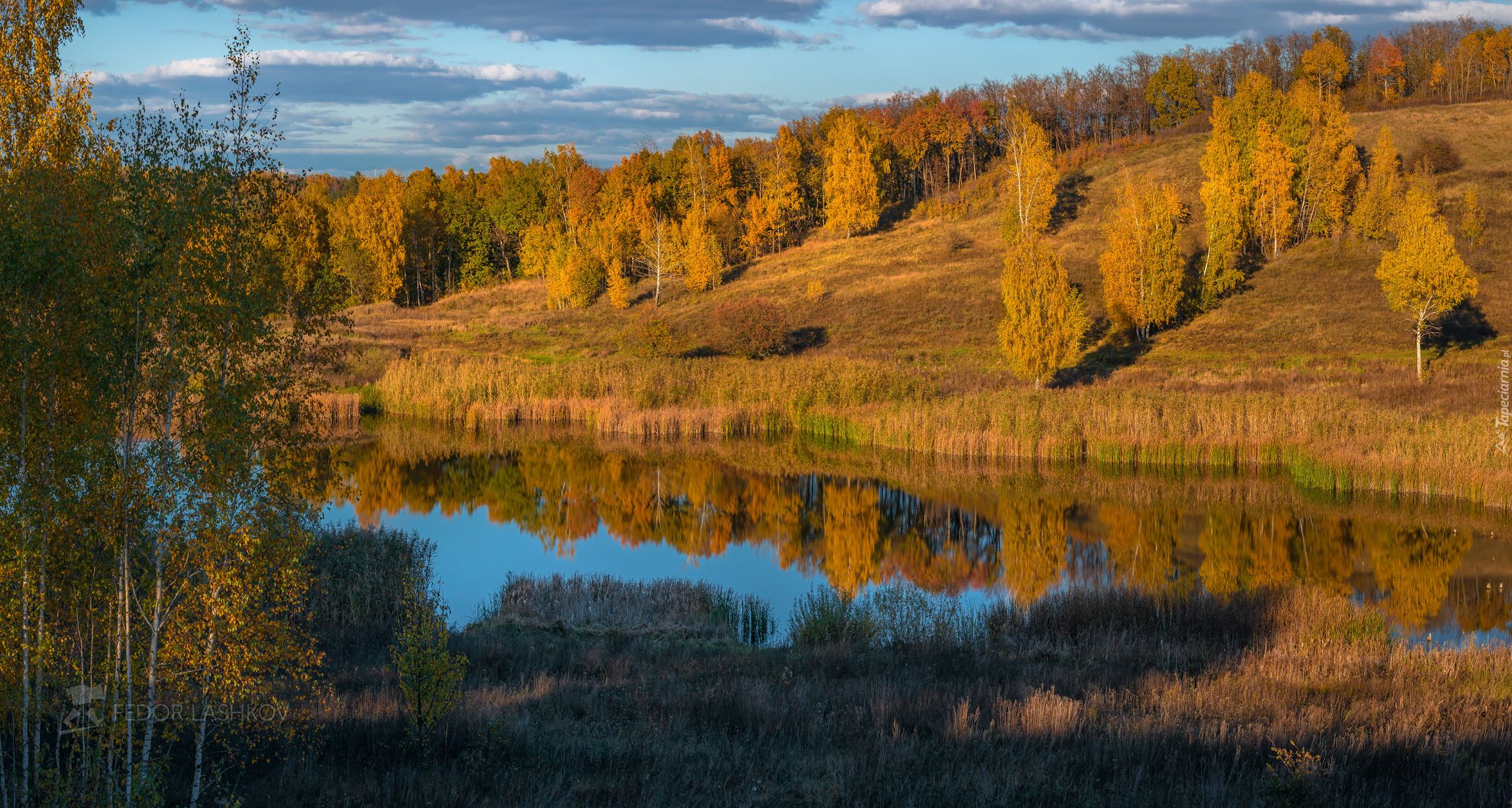 Edytor tapety: Pożółkłe drzewa na wzgórzu