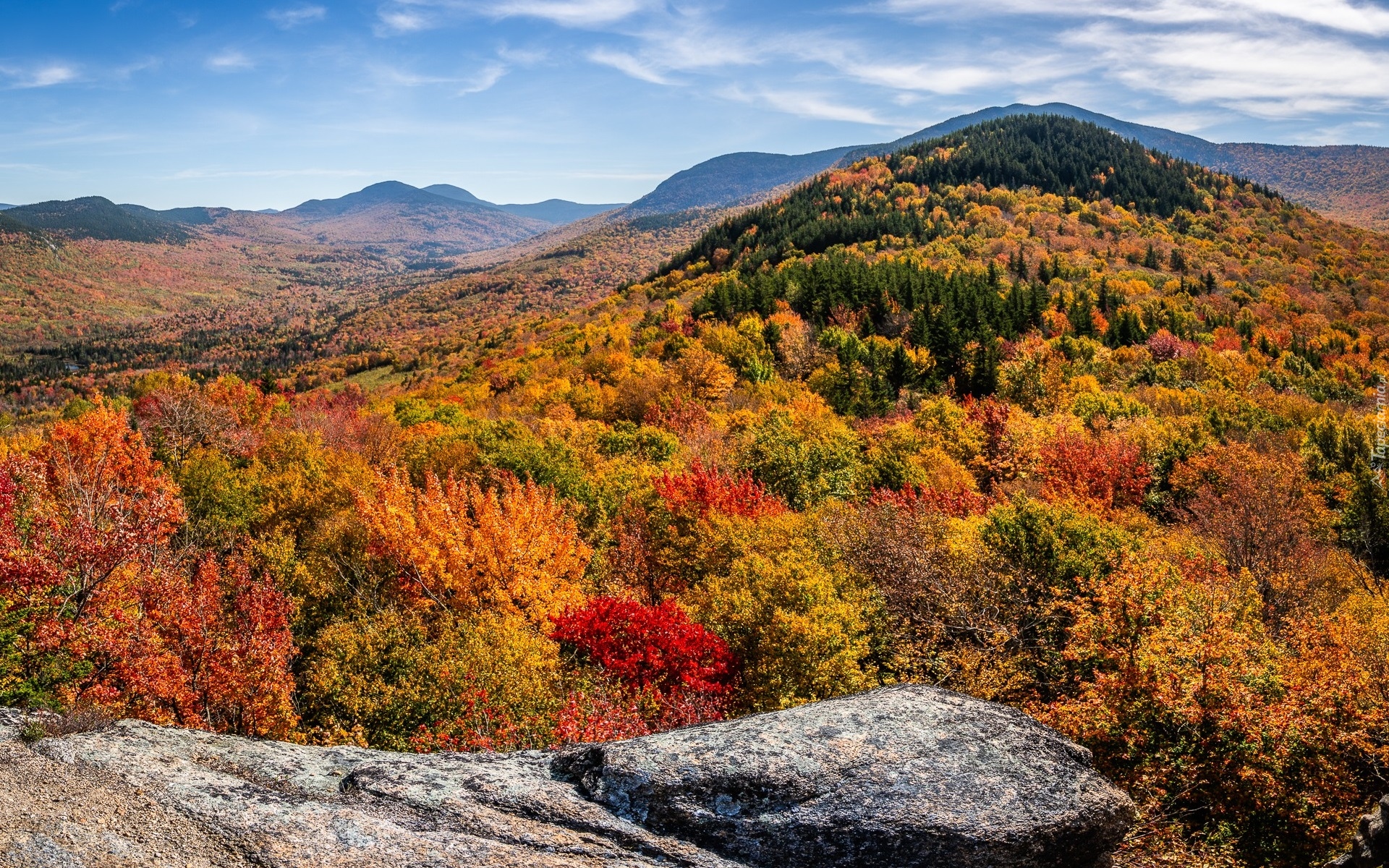 Edytor tapety: Widok na góry i wzgórze pokryte jesiennymi drzewami