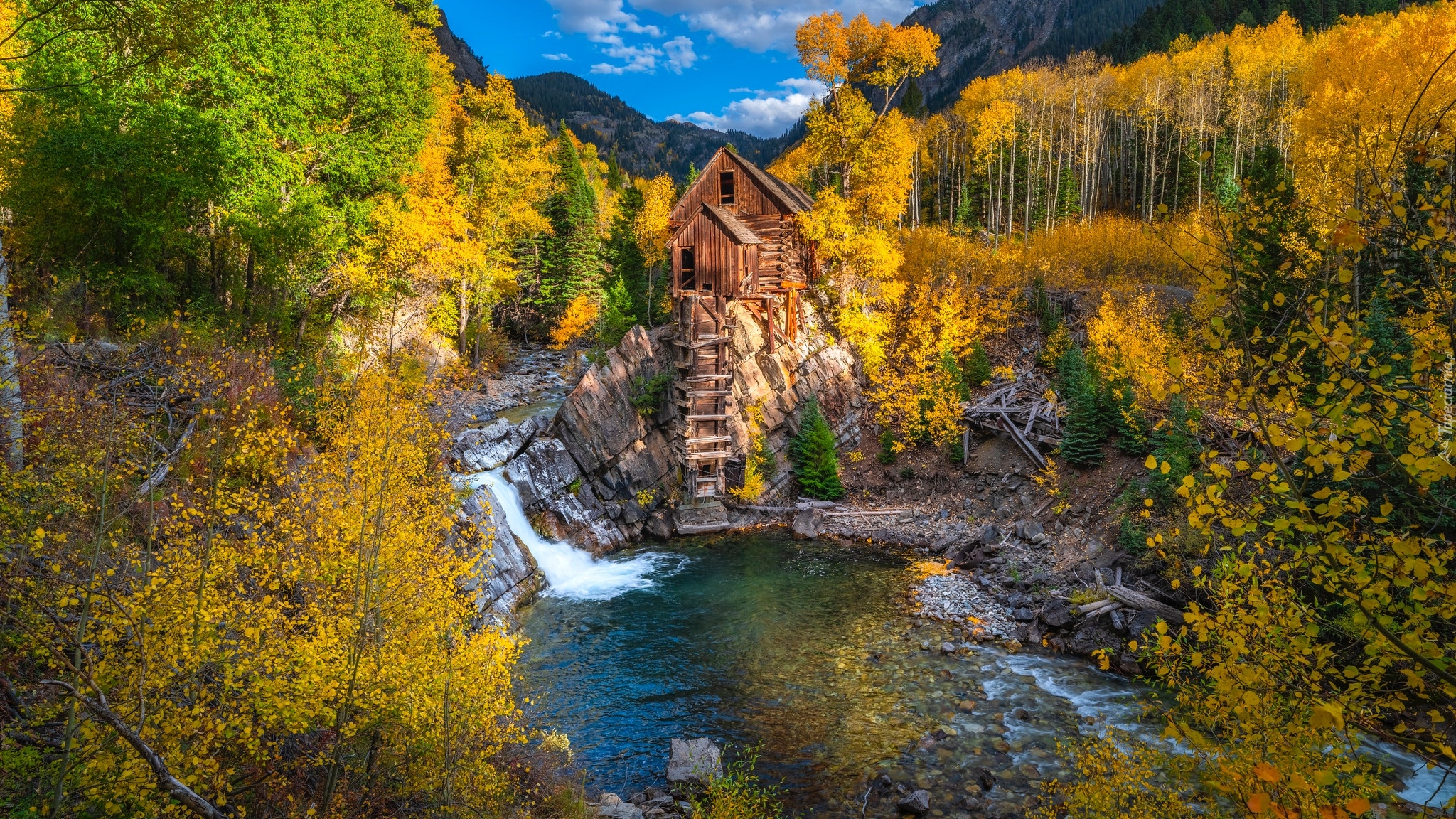 Edytor tapety: Młyn Crystal Mill nad rzeką Crystal w Kolorado