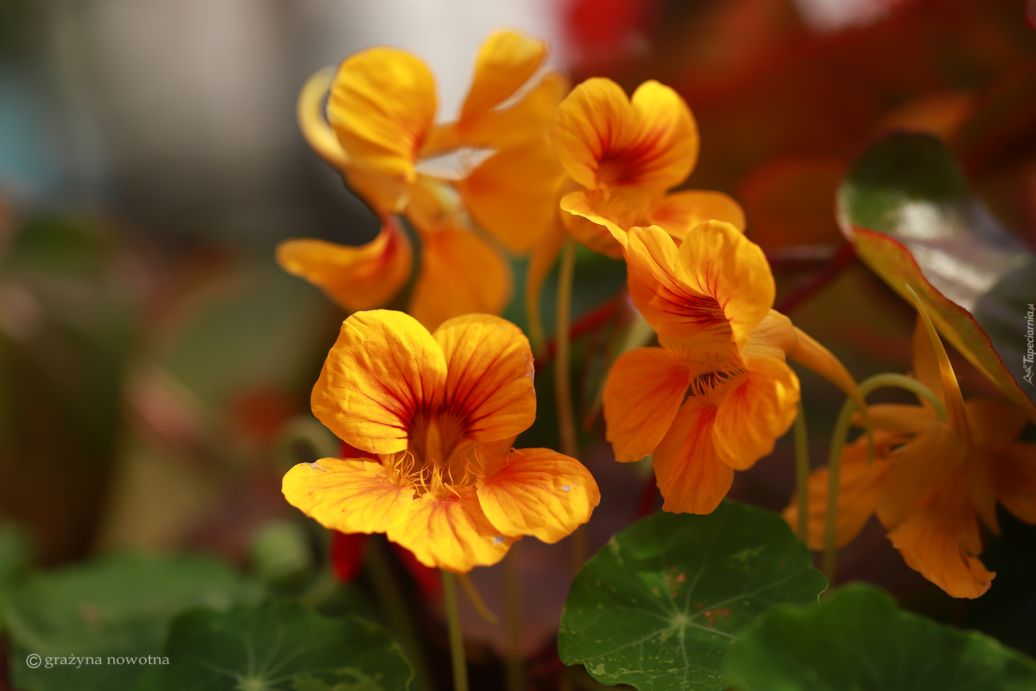 Edytor tapety: Rozświetlone pomarańczowe nasturcje