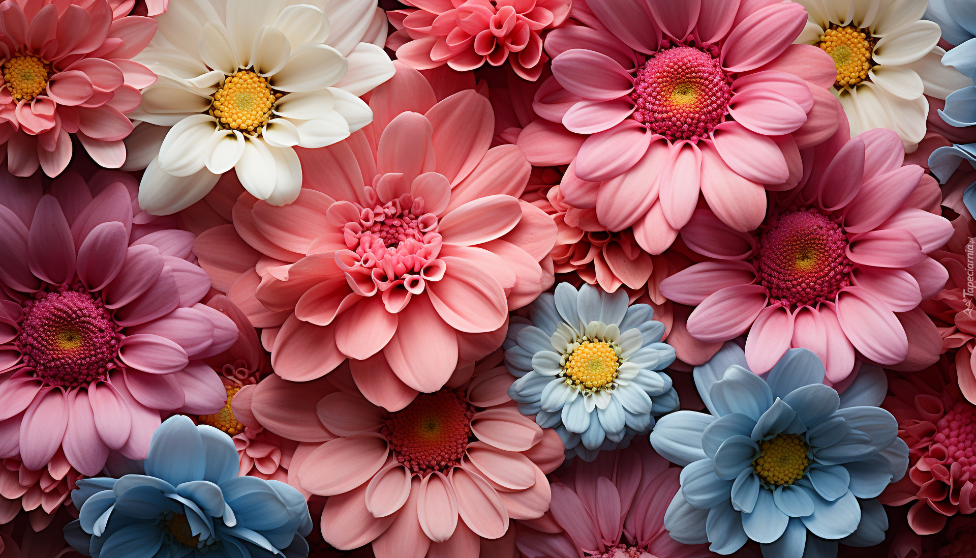 Edytor tapety: Grafika różnych kolorowych kwiatów