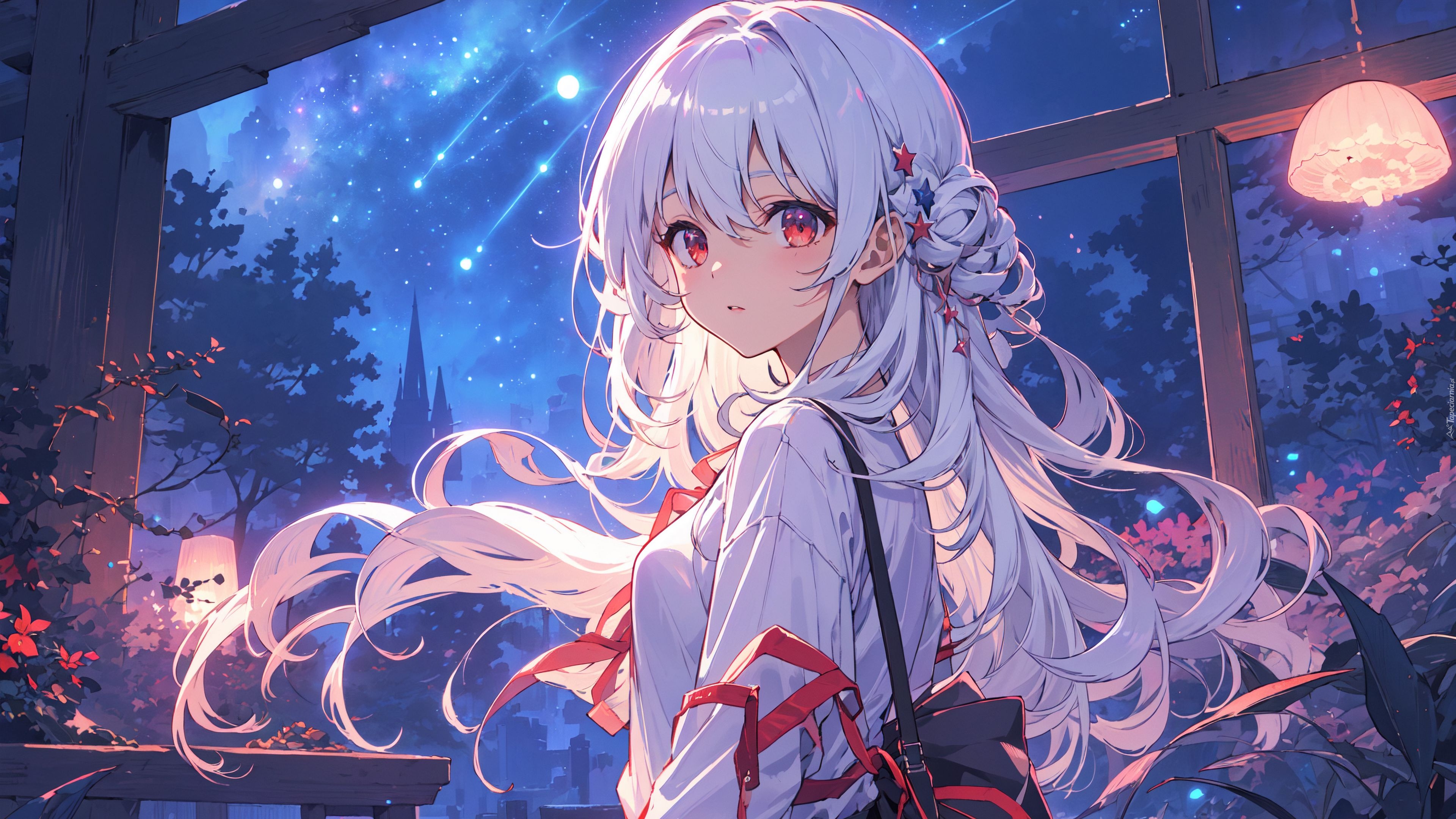 Edytor tapety: Długowłosa dziewczyna z torbą na ramieniu w anime