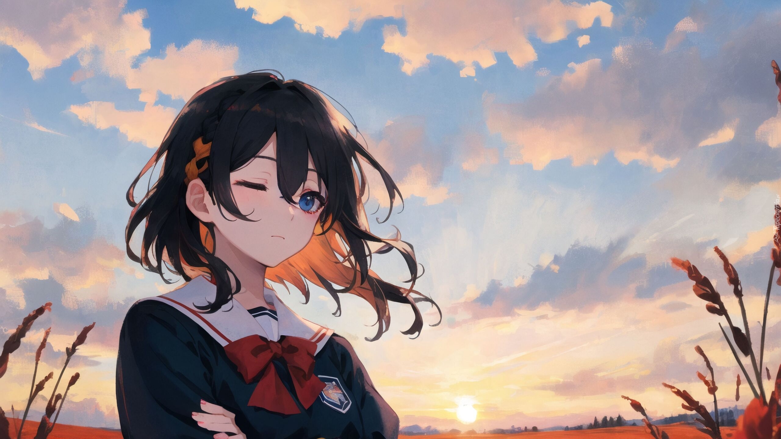 Edytor tapety: Dziewczyna z przymkniętym okiem w anime
