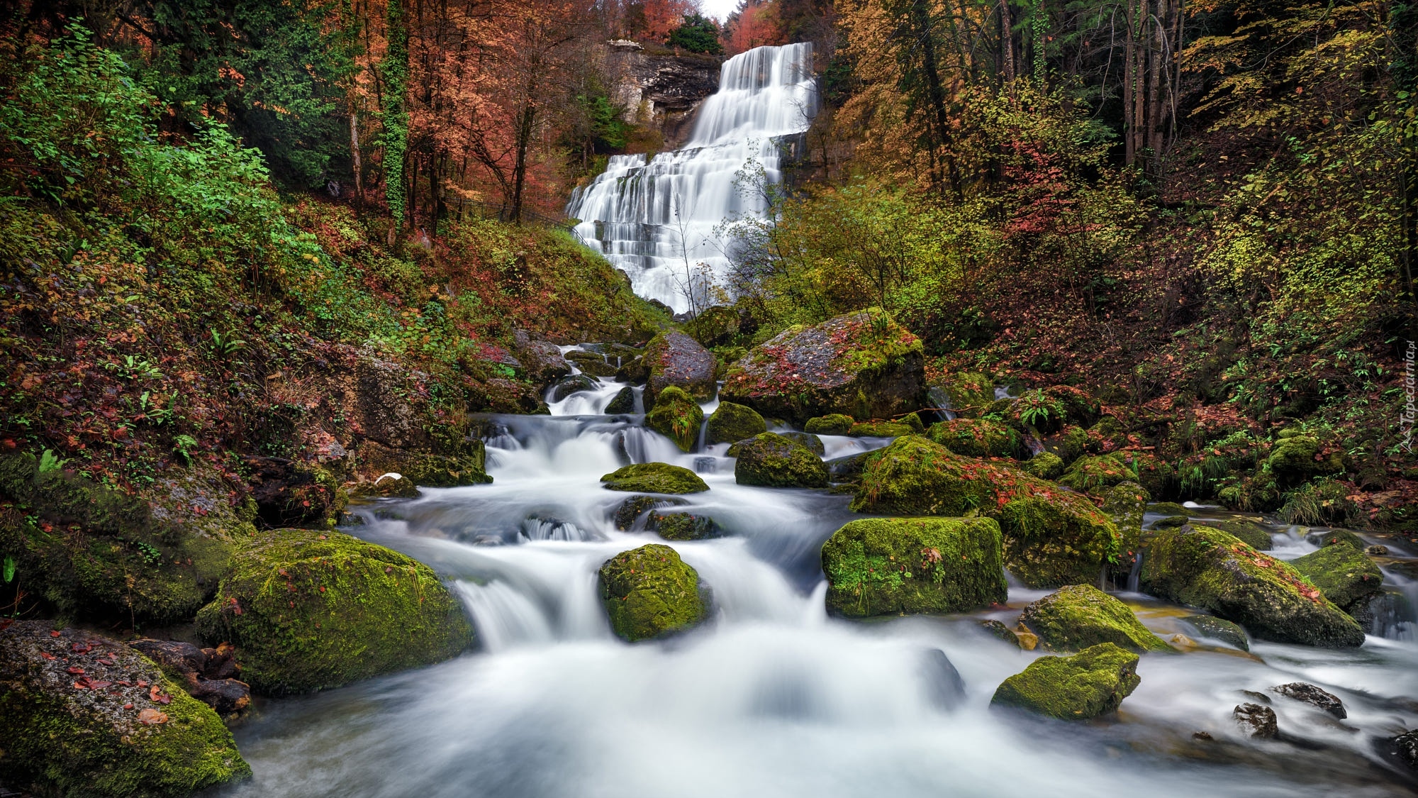 Edytor tapety: Leśny wodospad i rwąca rzeka