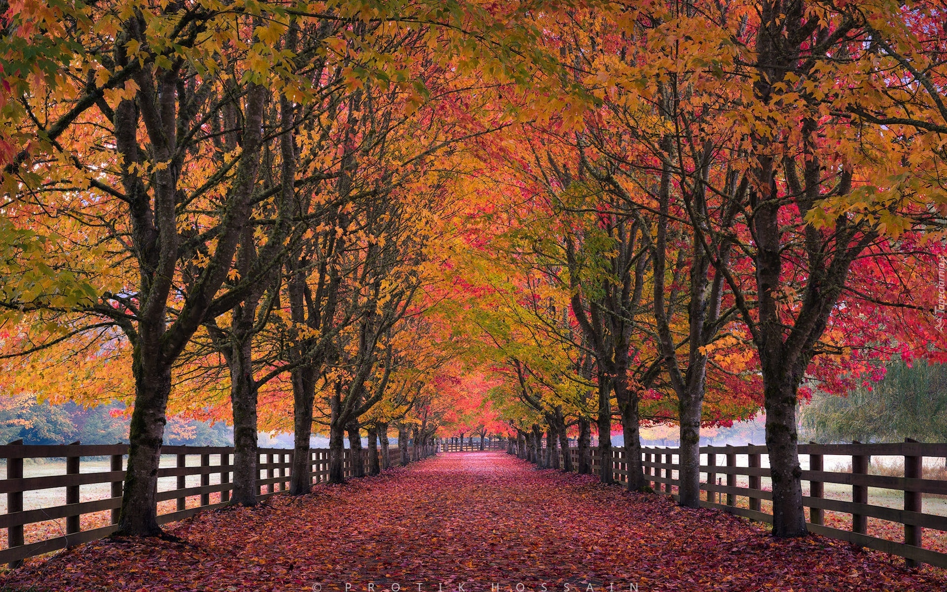 Edytor tapety: Aleja jesiennych drzew na farmie Rockwood Farm