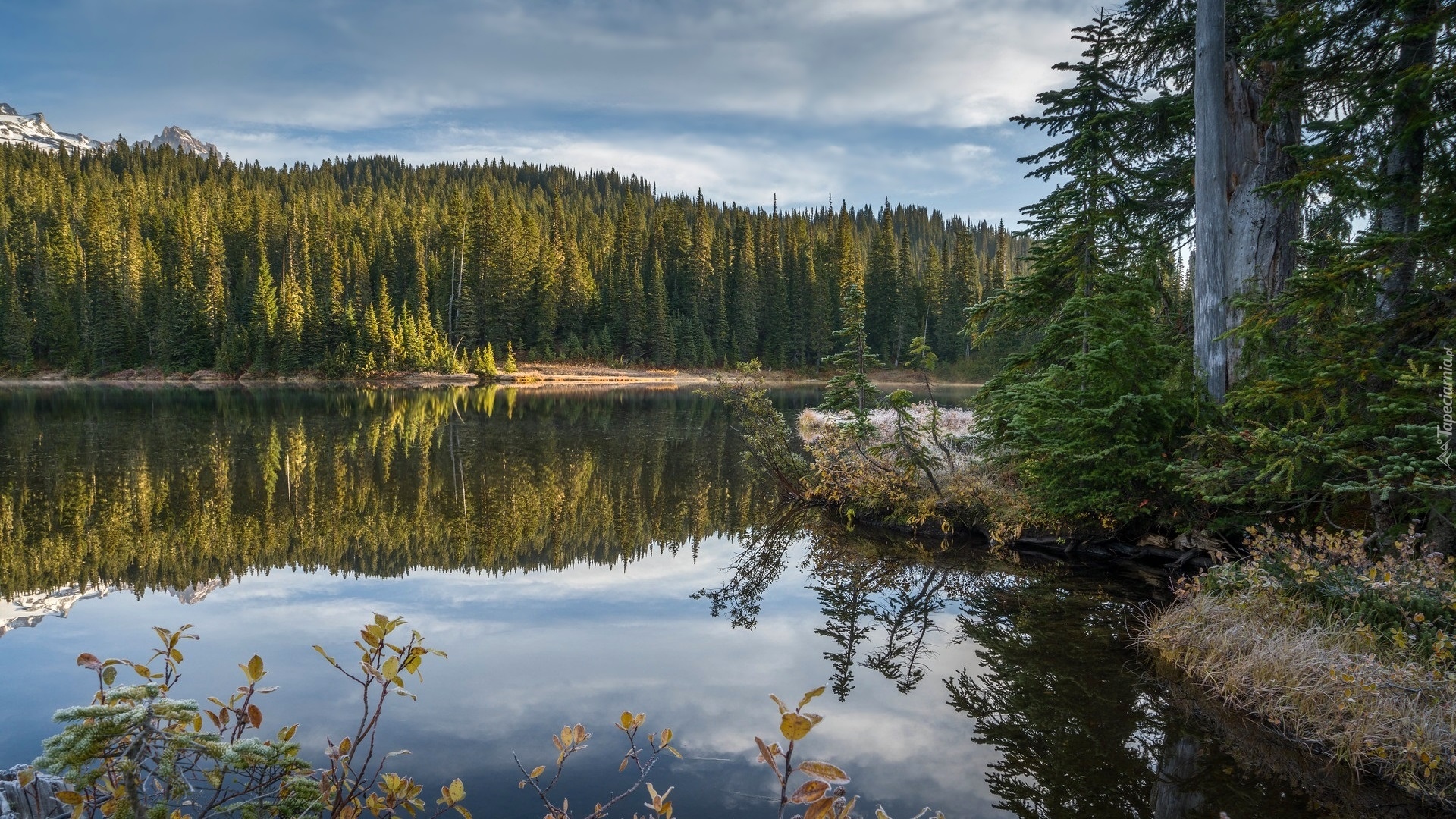 Edytor tapety: Zielone drzewa i las nad jeziorem