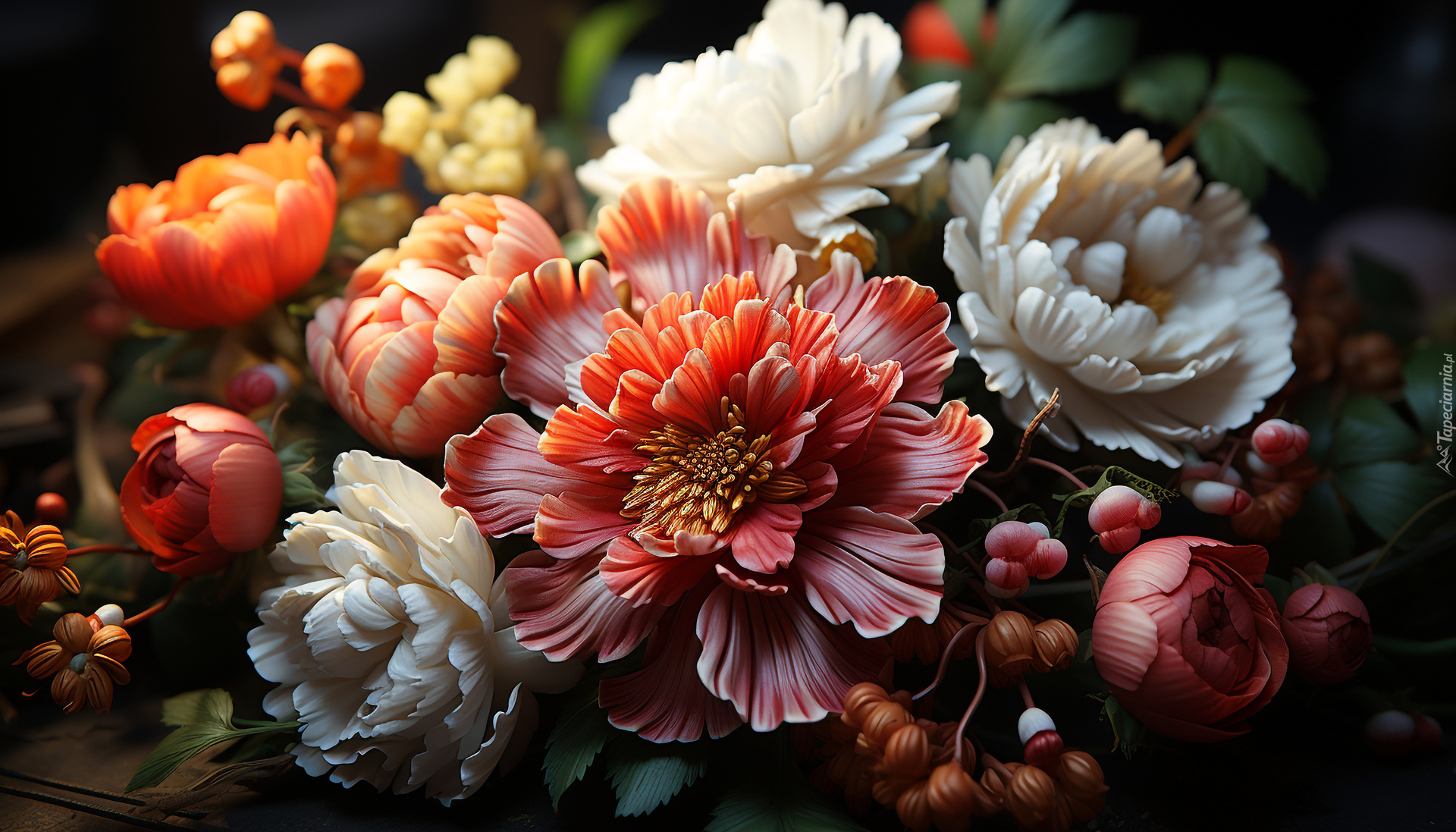 Edytor tapety: Wielobarwne oświetlone kwiaty w grafice