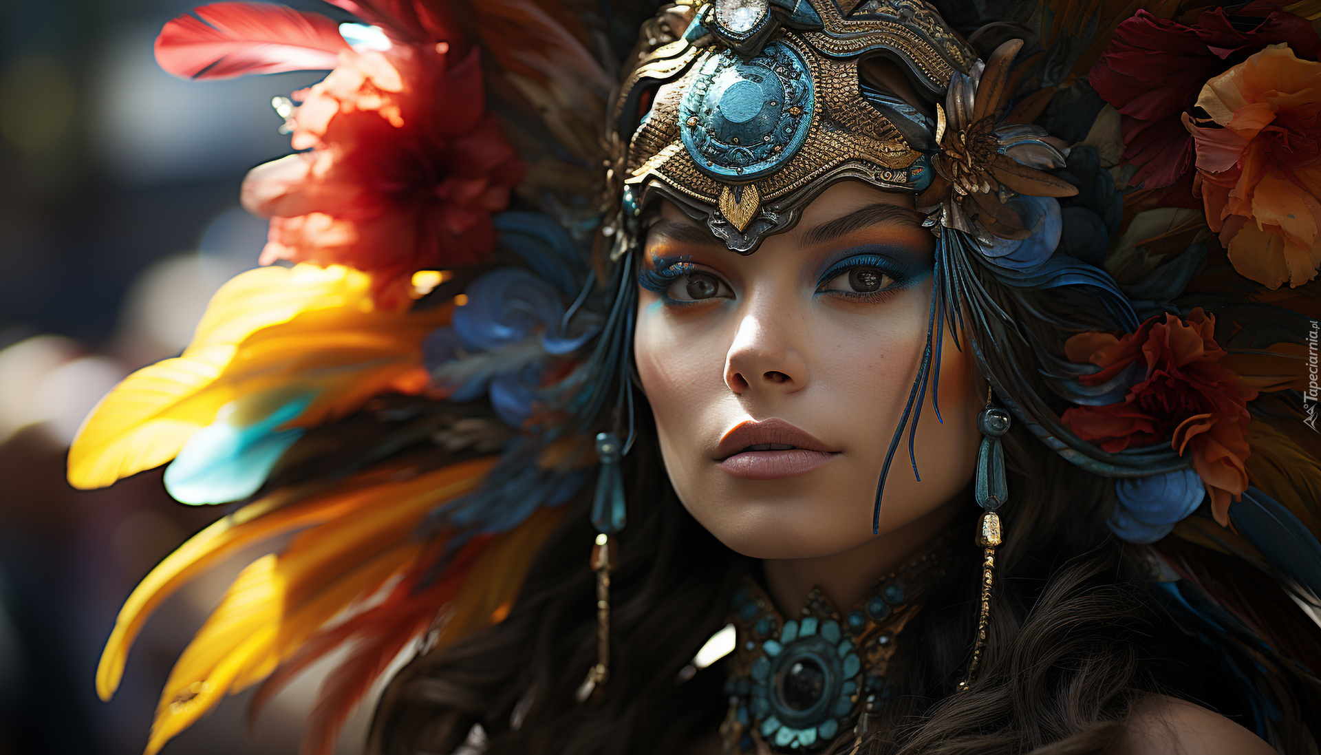 Edytor tapety: Twarz kobiety w pióropuszu na głowie