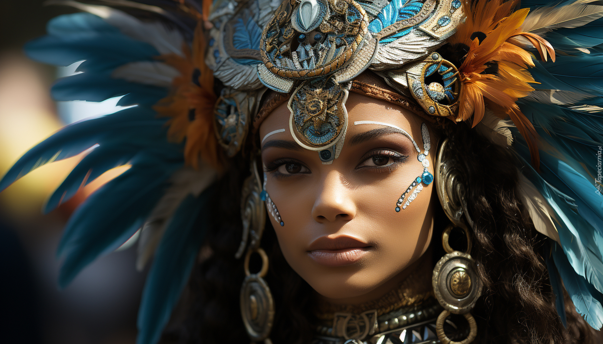 Edytor tapety: Dziewczyna z niebieskimi piórami na głowie