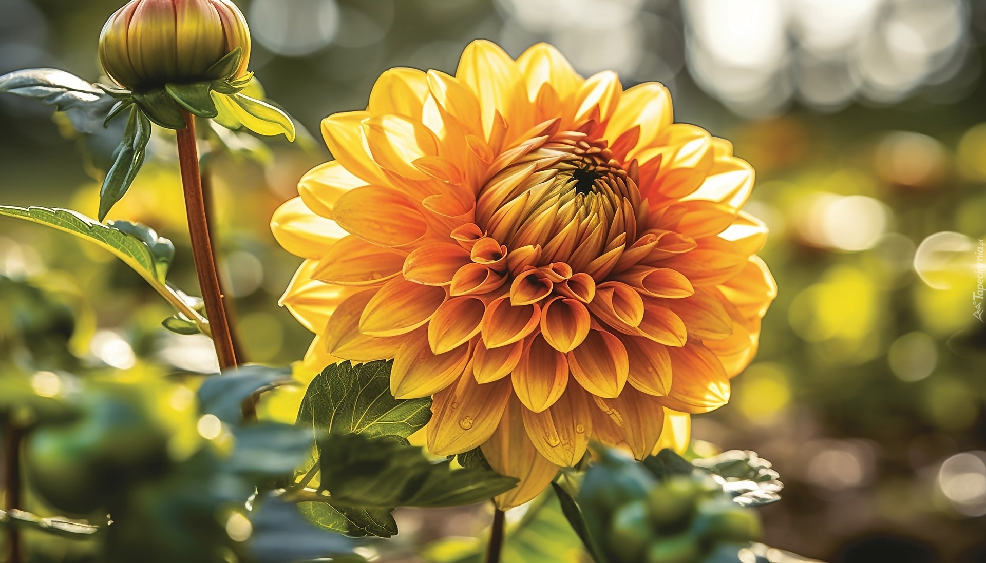 Edytor tapety: Rozświetlona żółta dalia z pąkiem
