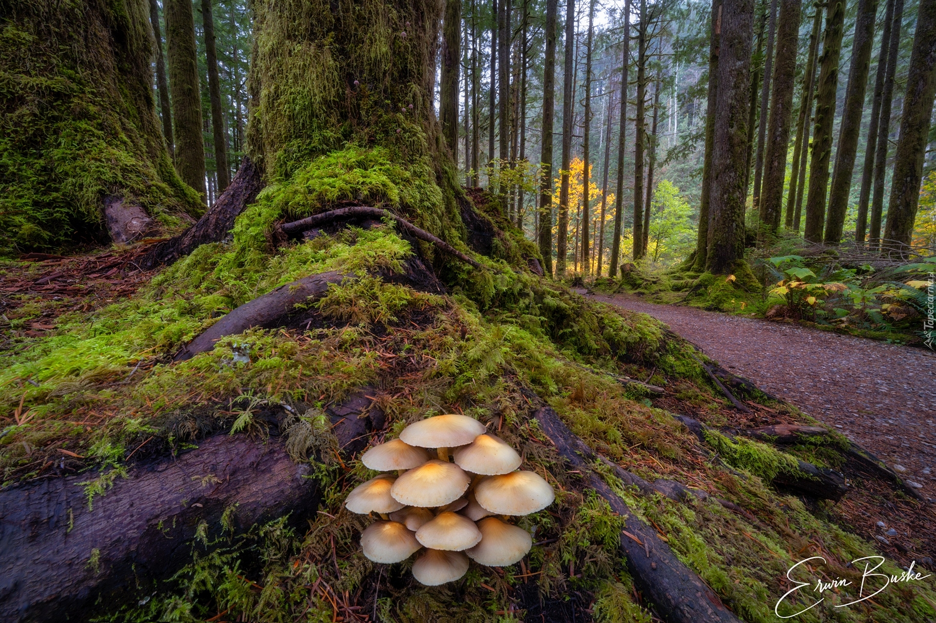 Edytor tapety: Grzyby przy korzeniach drzewa