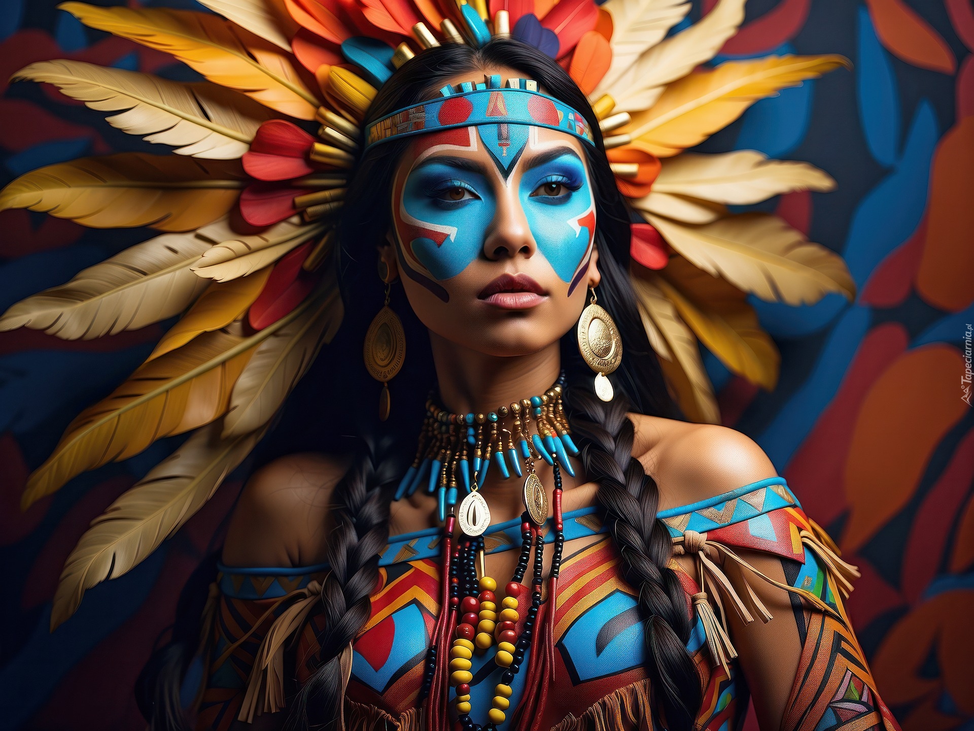 Edytor tapety: Indianka z pomalowaną twarzą w pióropuszu