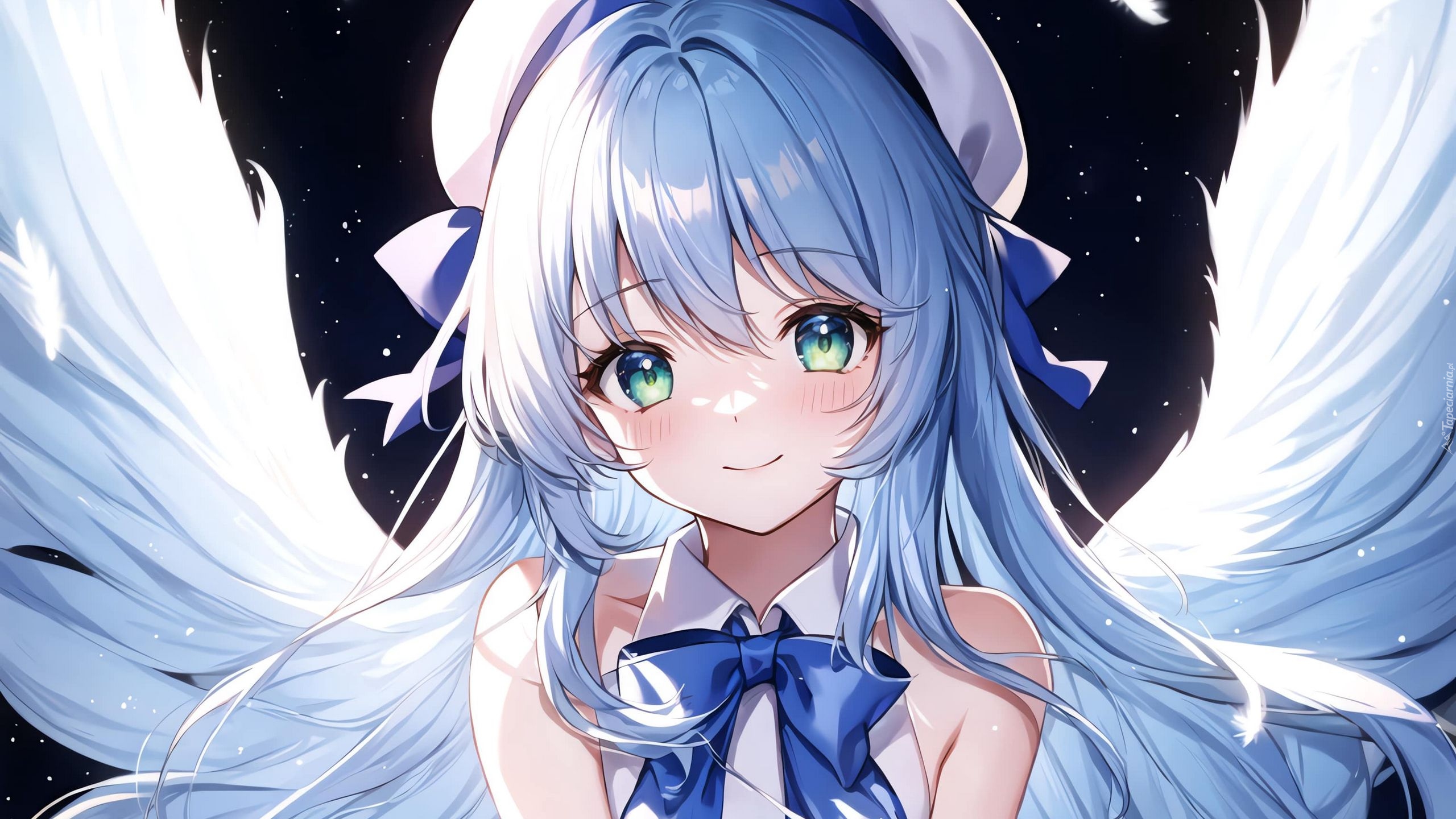 Edytor tapety: Zielonooka dziewczyna ze skrzydłami w anime