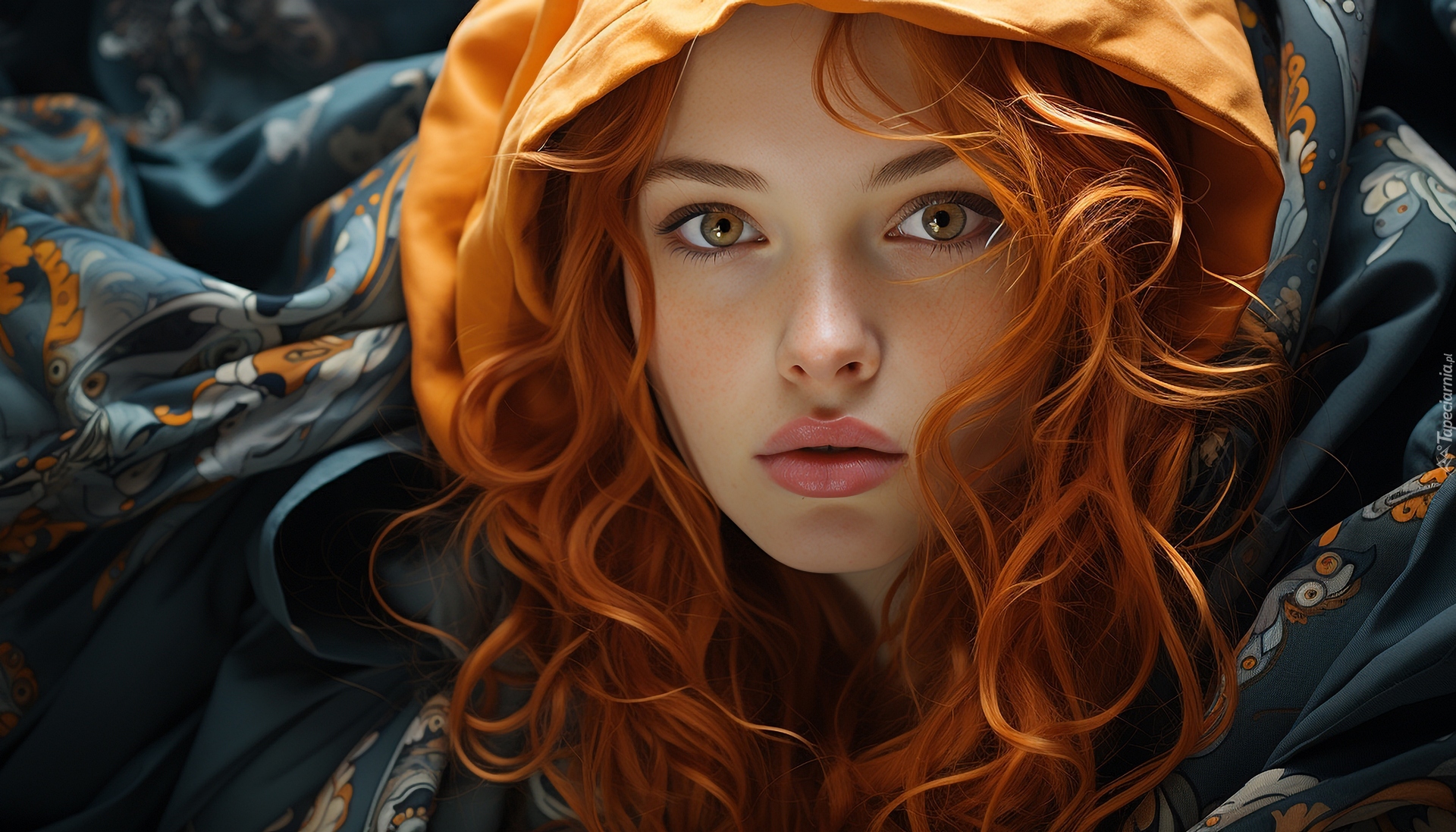 Edytor tapety: Rudowłosa kobieta w pomarańczowym kapturze