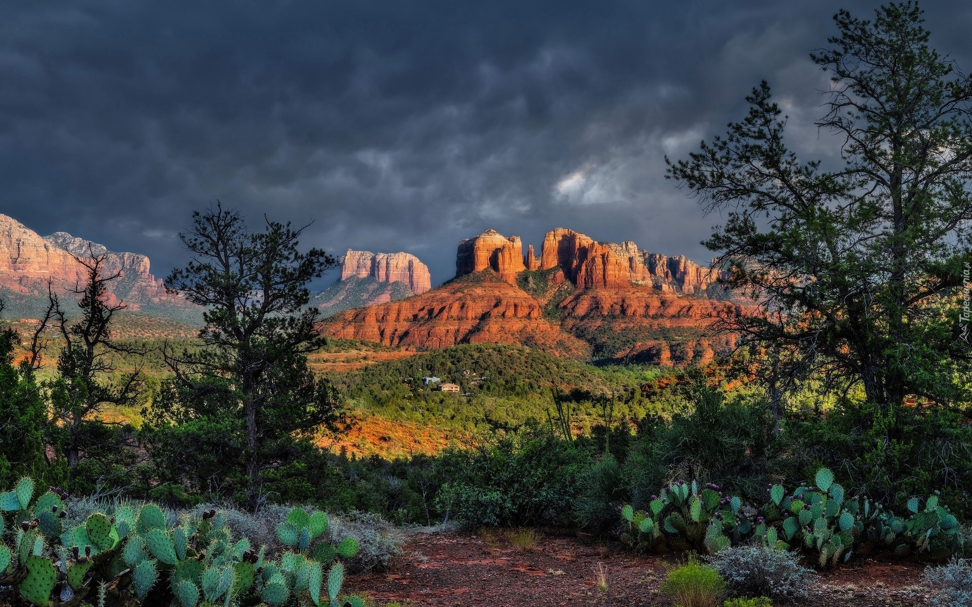 Edytor tapety: Ciemne chmury nad Cathedral Rock w Sedonie