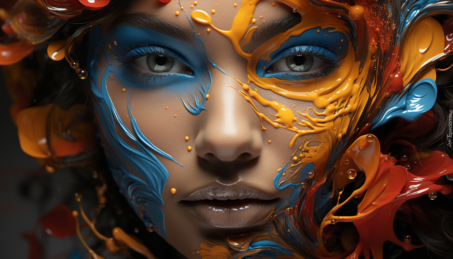 Edytor tapety: Kolorowa farba na twarzy kobiety w grafice