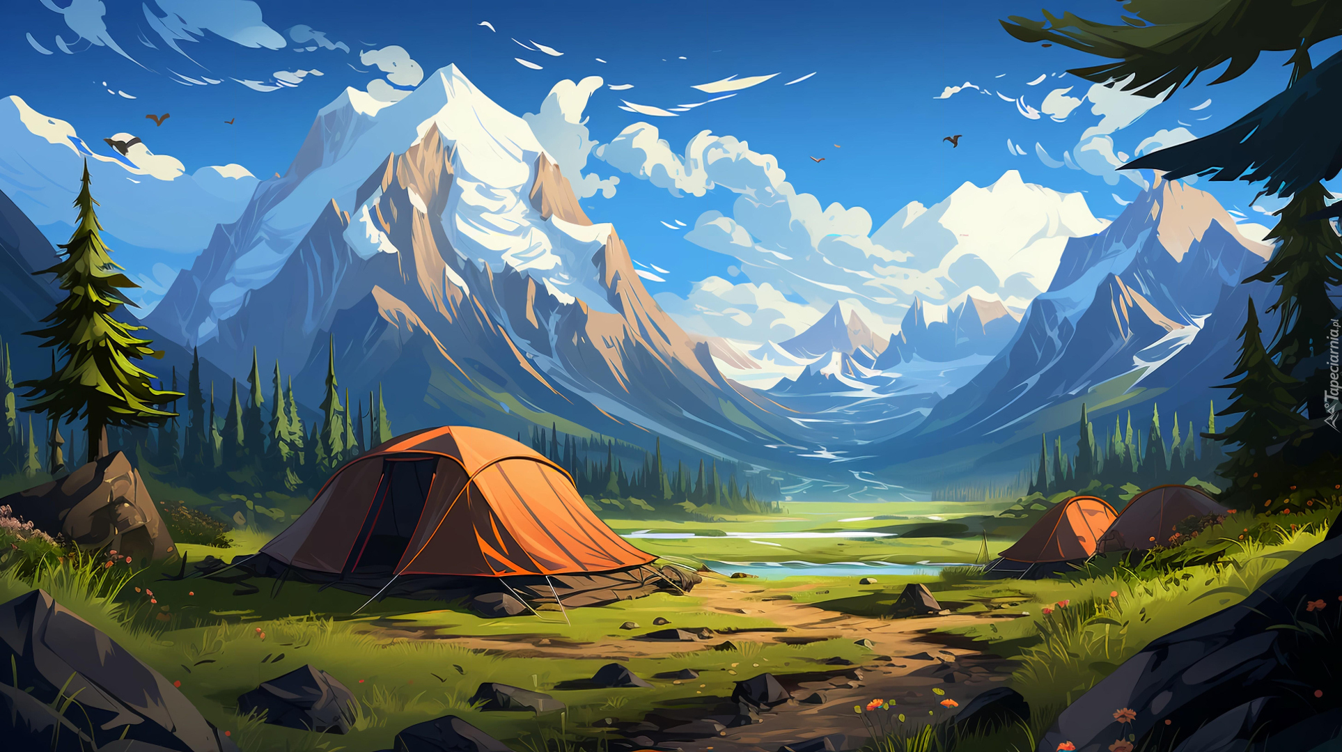 Edytor tapety: Namioty w górskiej dolinie