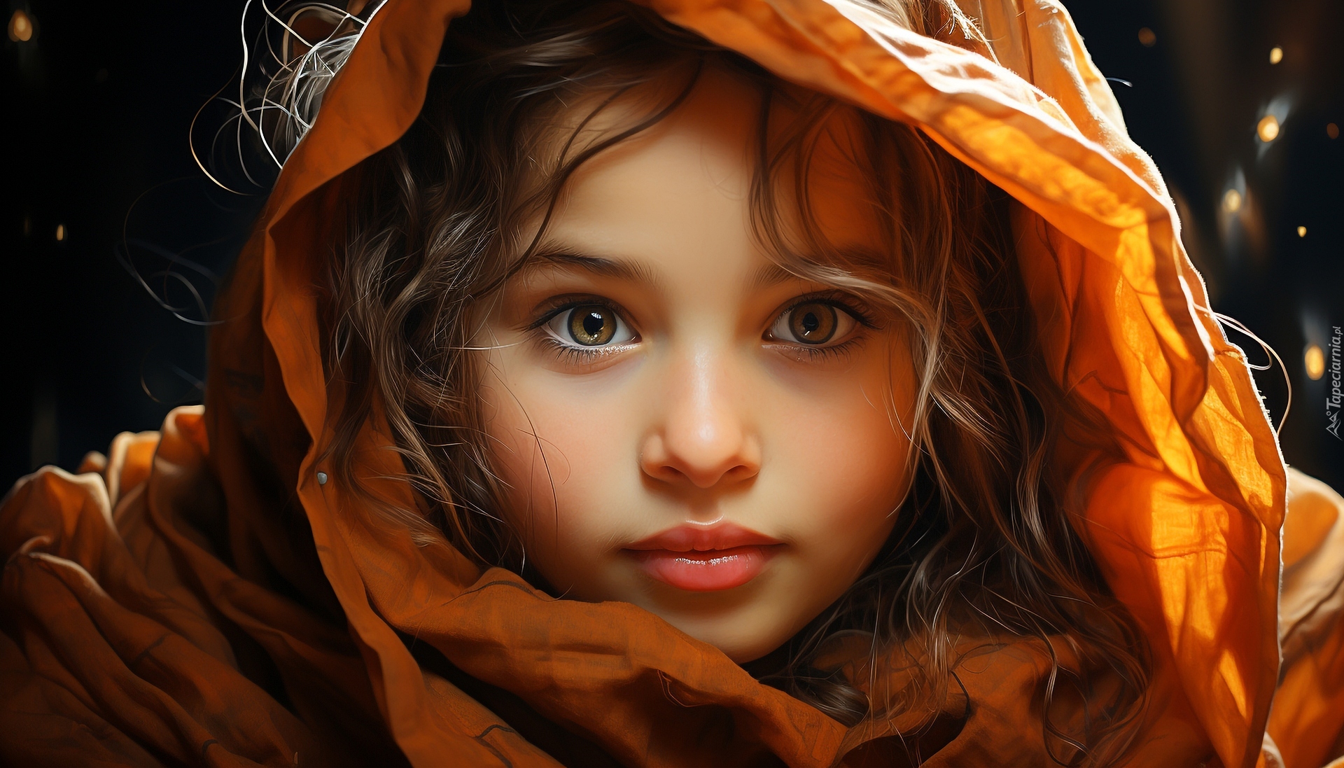 Edytor tapety: Spojrzenie dziewczynki w kapturze