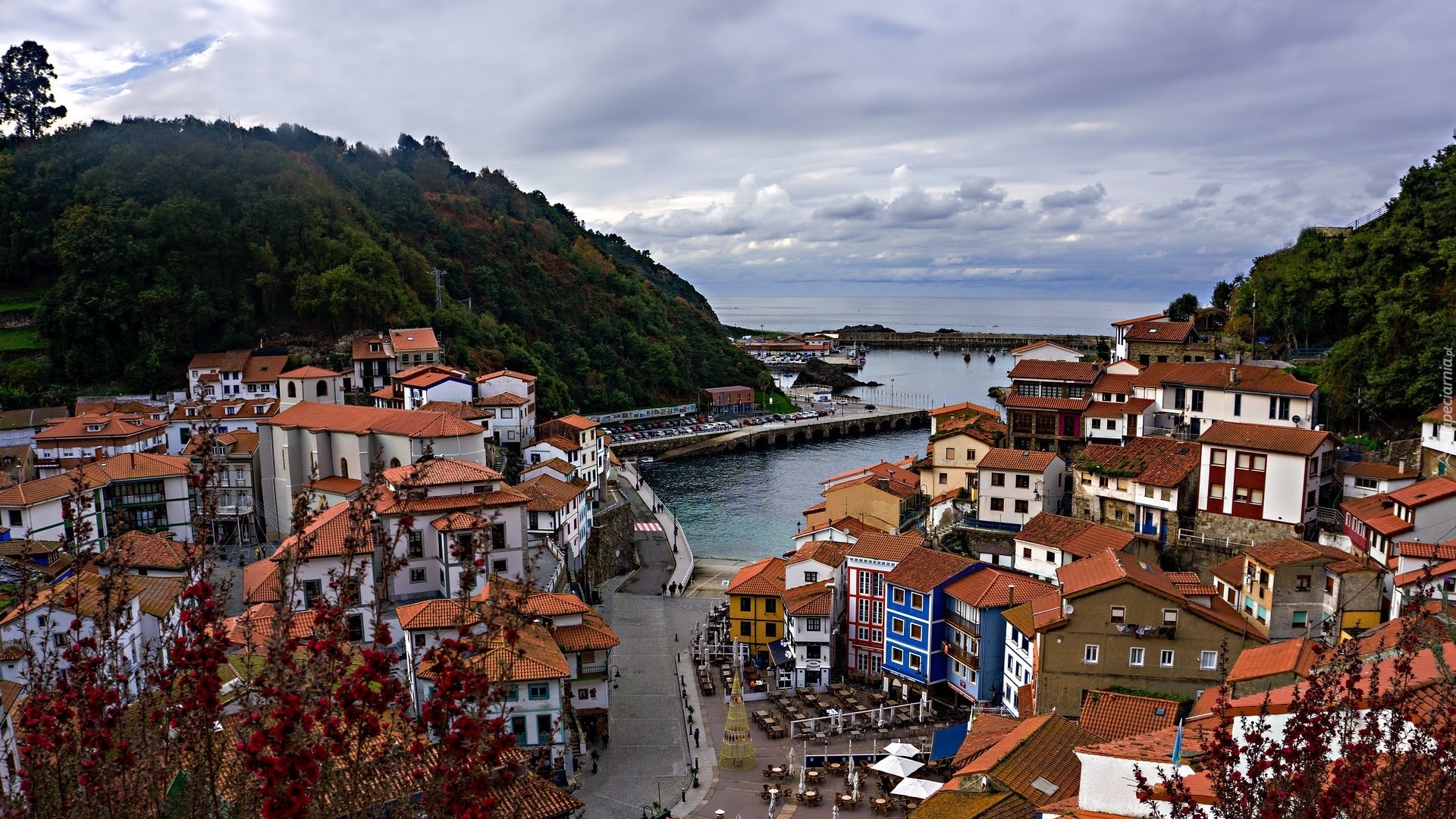 Edytor tapety: Miasteczko Cudillero w Hiszpanii pod chmurami