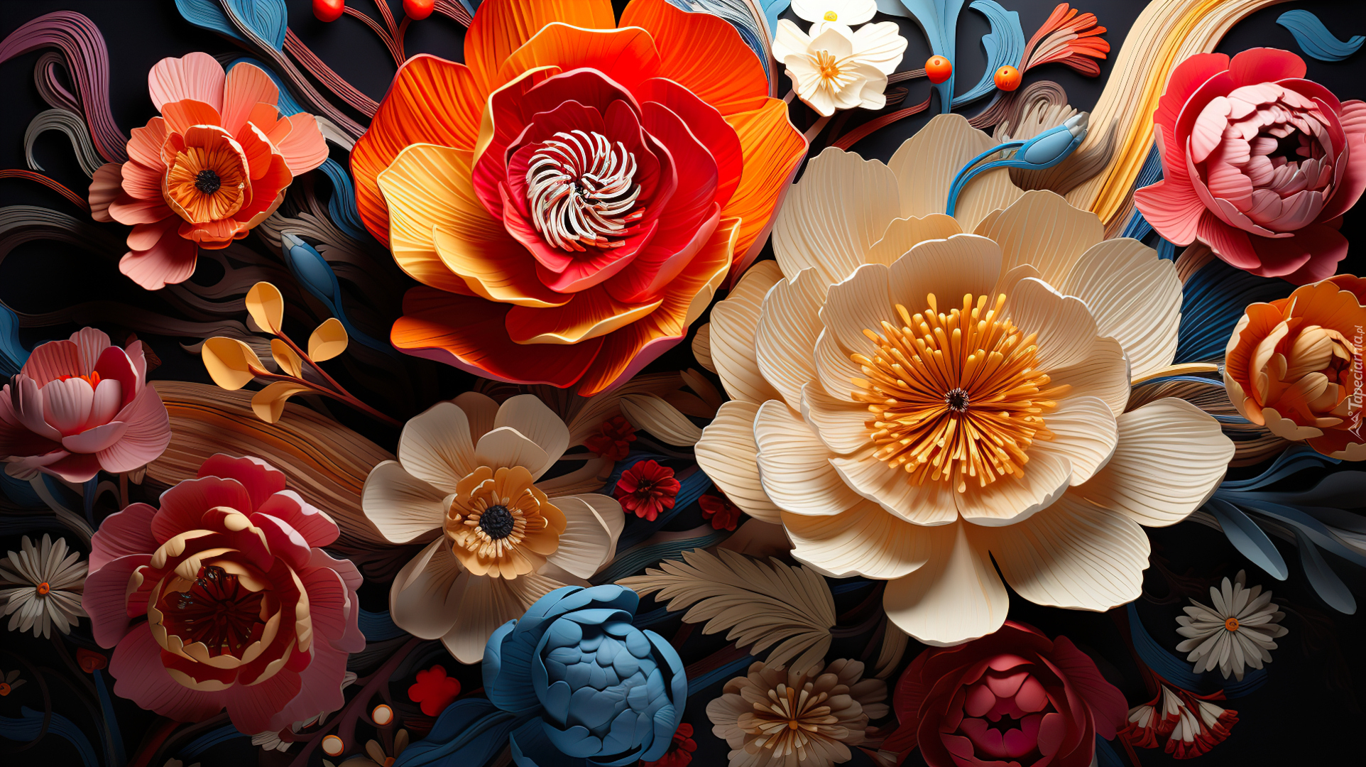 Edytor tapety: Rozświetlone kolorowe kwiaty w grafice 2D