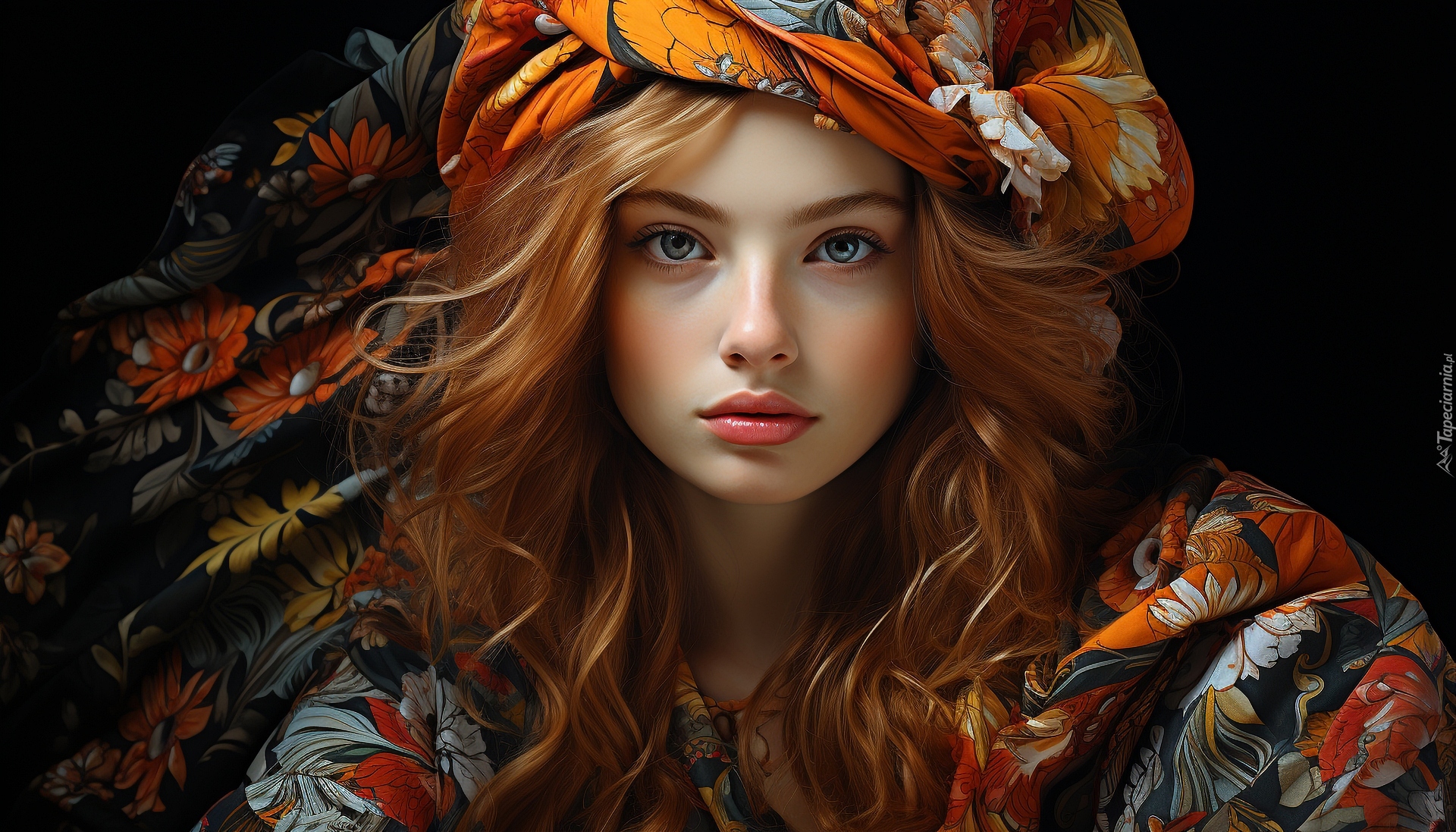 Edytor tapety: Rudowłosa dziewczyna w kolorowym turbanie na głowie