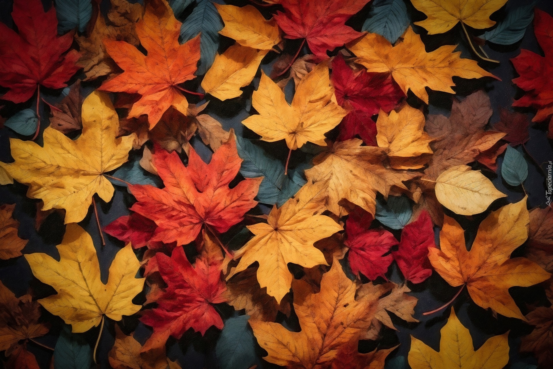 Edytor tapety: Kolorowe jesienne liście w grafice