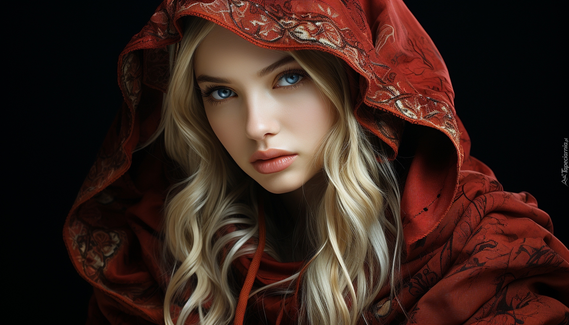 Edytor tapety: Niebieskooka blondynka w kapturze