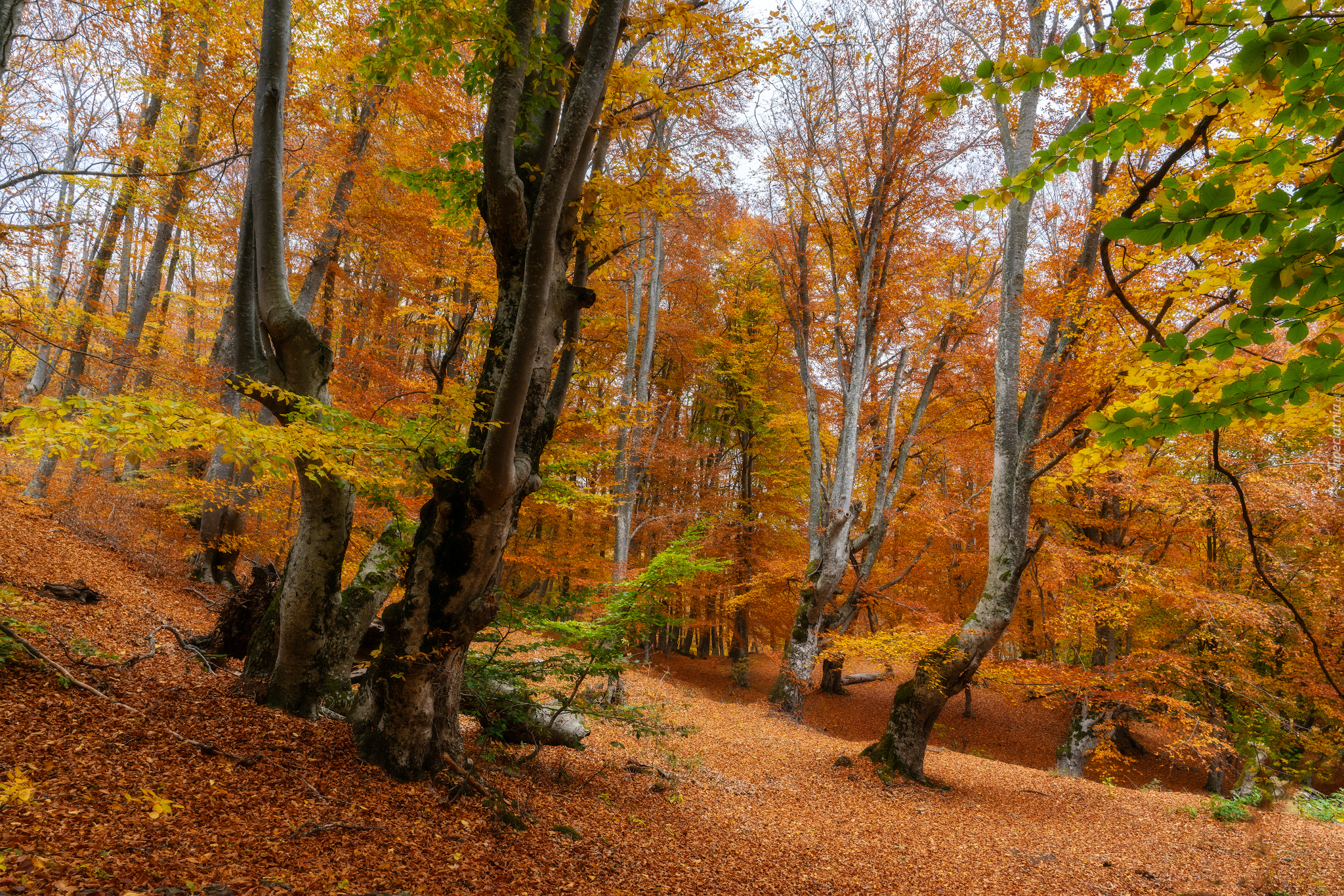Edytor tapety: Drzewa w lesie jesienną porą