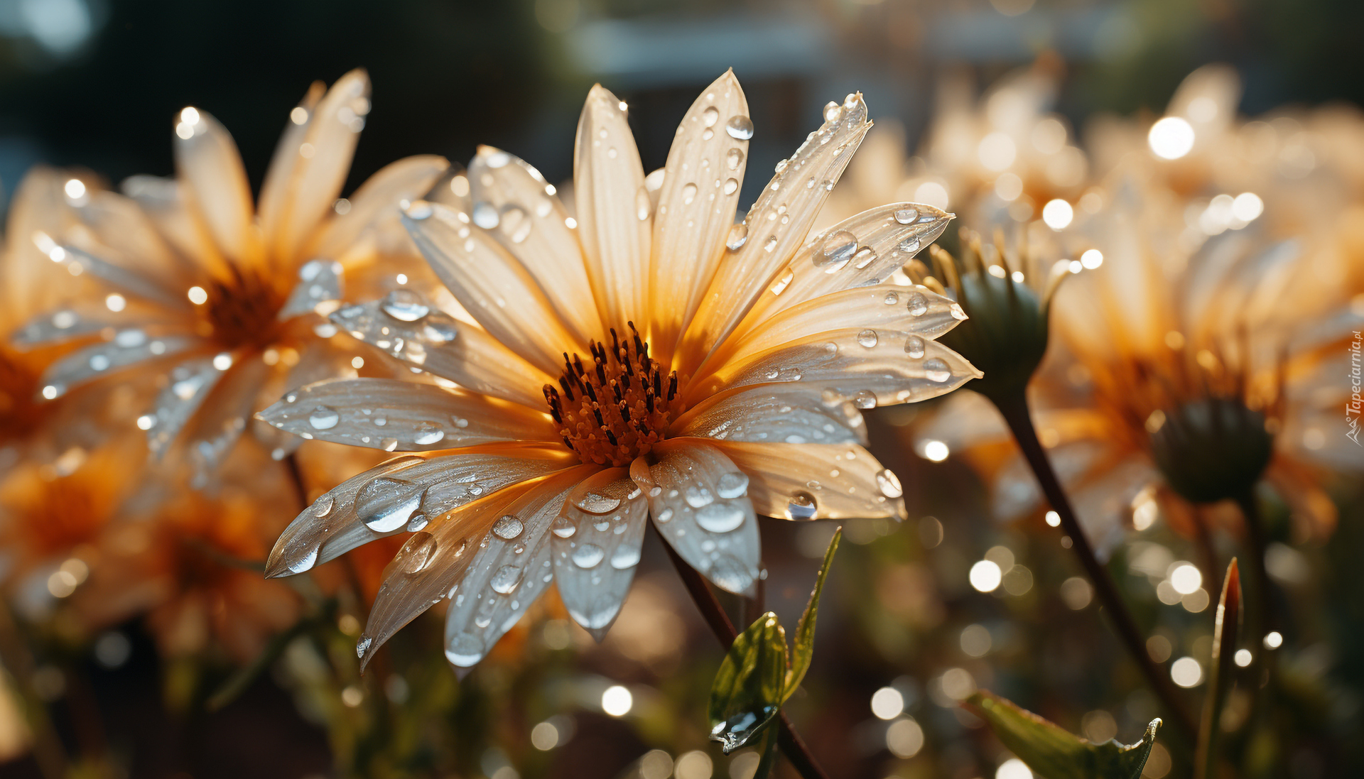 Edytor tapety: Krople wody na rozświetlonym kwiatku